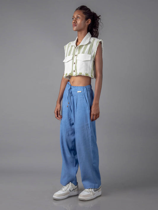 Jharkhand Handloom Textile Unisex Blue Wide Leg Pant