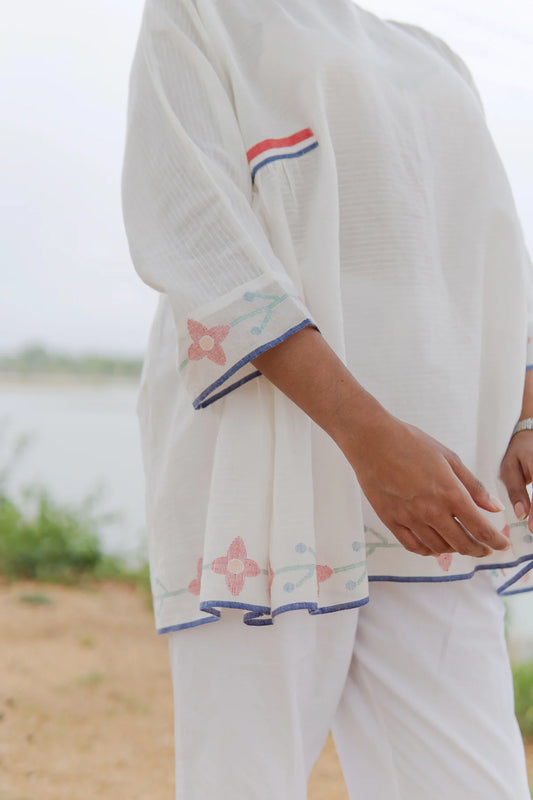 Roja Jamdani | White Tunic