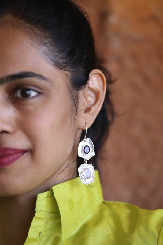 Twilight Bloom | Dual-Stone Sculpted Silver Earrings