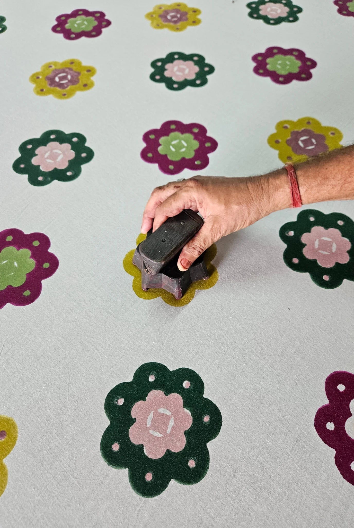 We believe customers have a right to know how their product was made. 4.25 metres of cotton poplin fabric sourced from Jaipur has been used for this piece. Hand-printed by our artisans in Jaipur, manufactured in our workshop at Pune India.