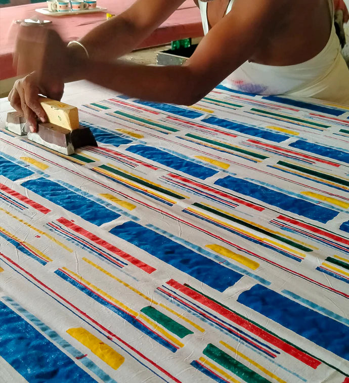 All of Rias' fabrics, from the initial yarn to the final fabric production, are meticulously crafted by hand. They proudly refrain from using mill-made textiles, relying instead on the skilled craftsmanship of weavers from West Bengal. Their dedication to authenticity extends to the development of unique designs, which are meticulously hand-blocked using intricately carved wooden blocks. The artistry of hand-block printing seamlessly marries tradition with innovation.