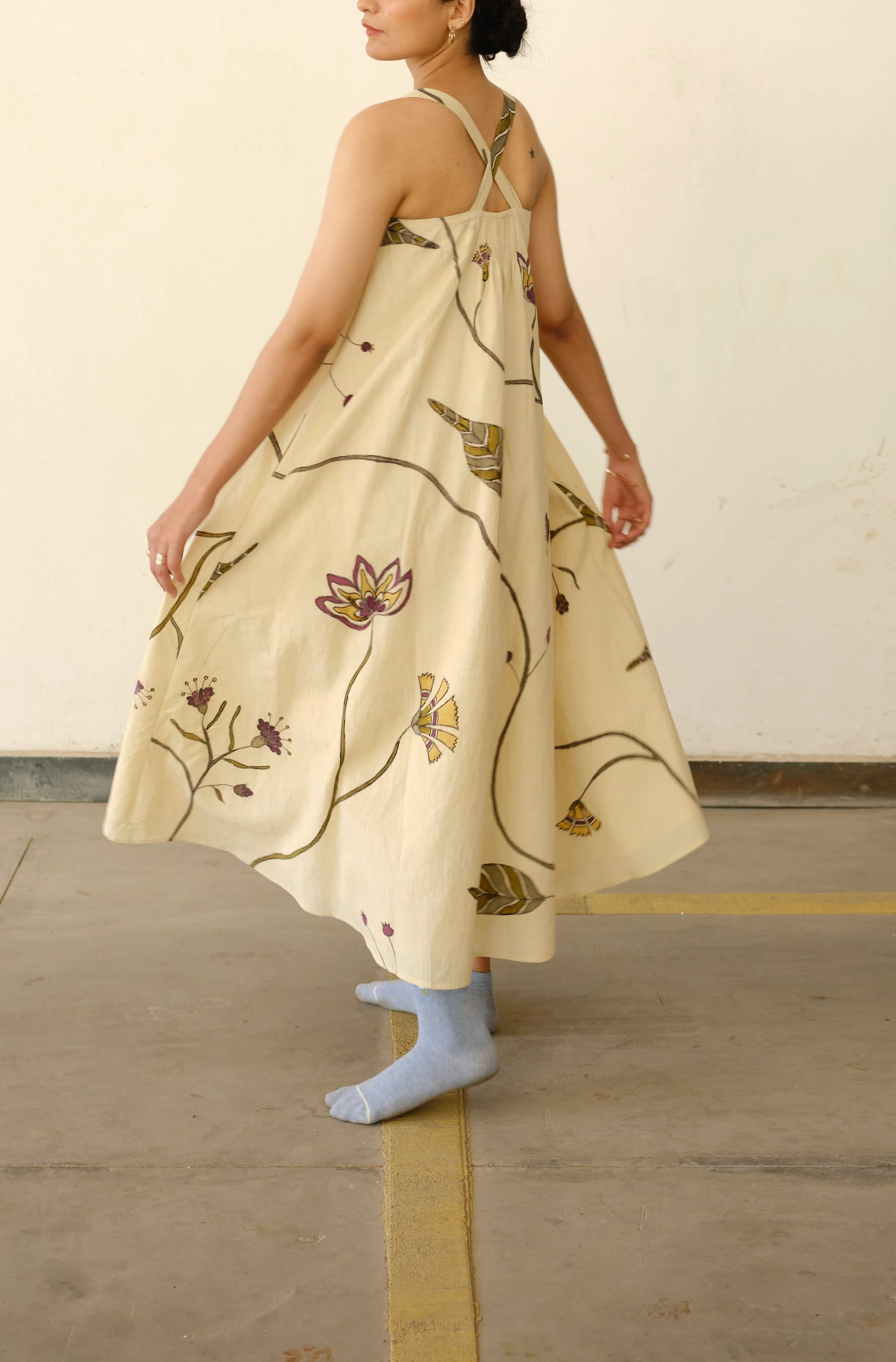The perfect summer dress, with cross strap back and flared silhoutte in our signature print of the season.