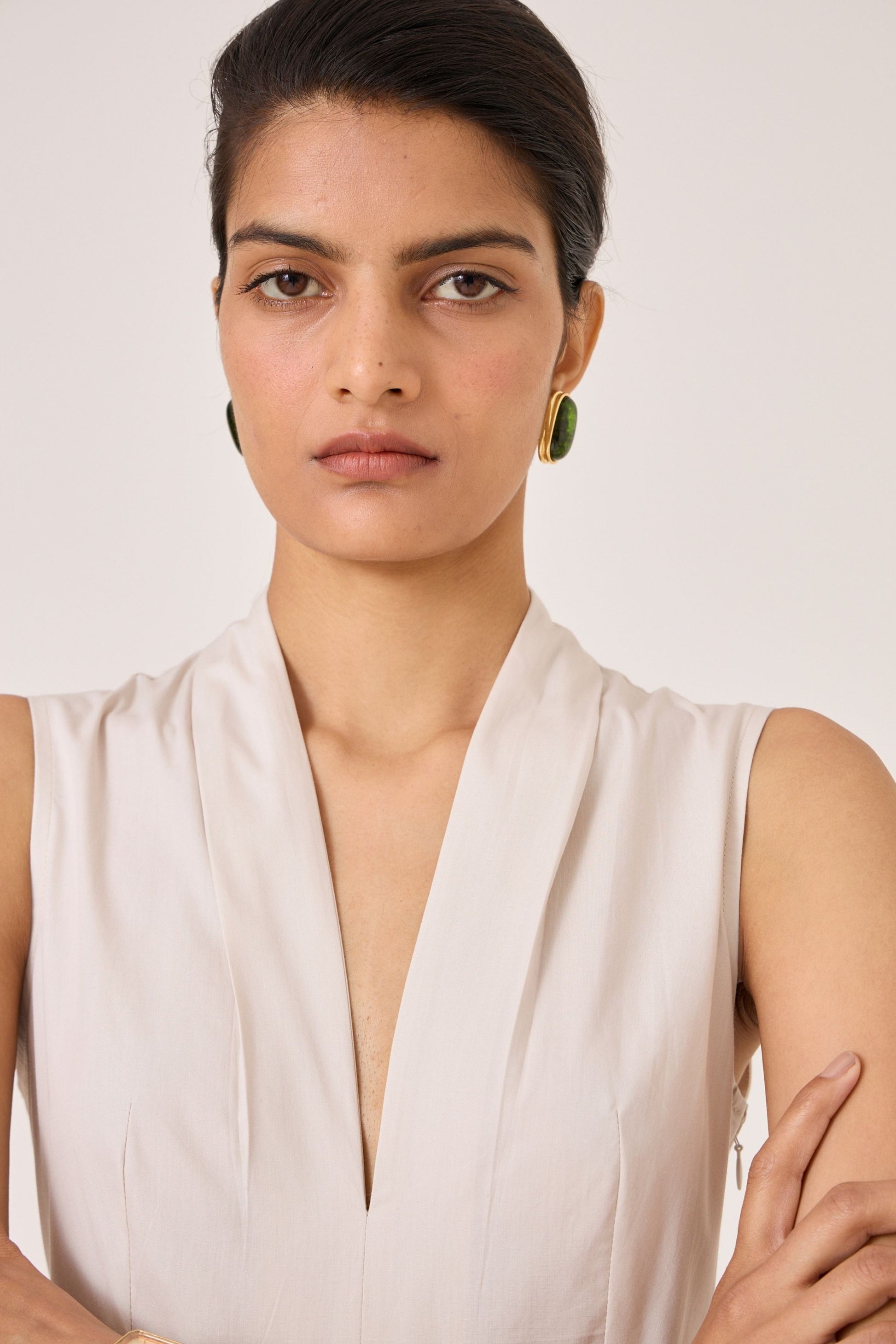 - Defined V neckline