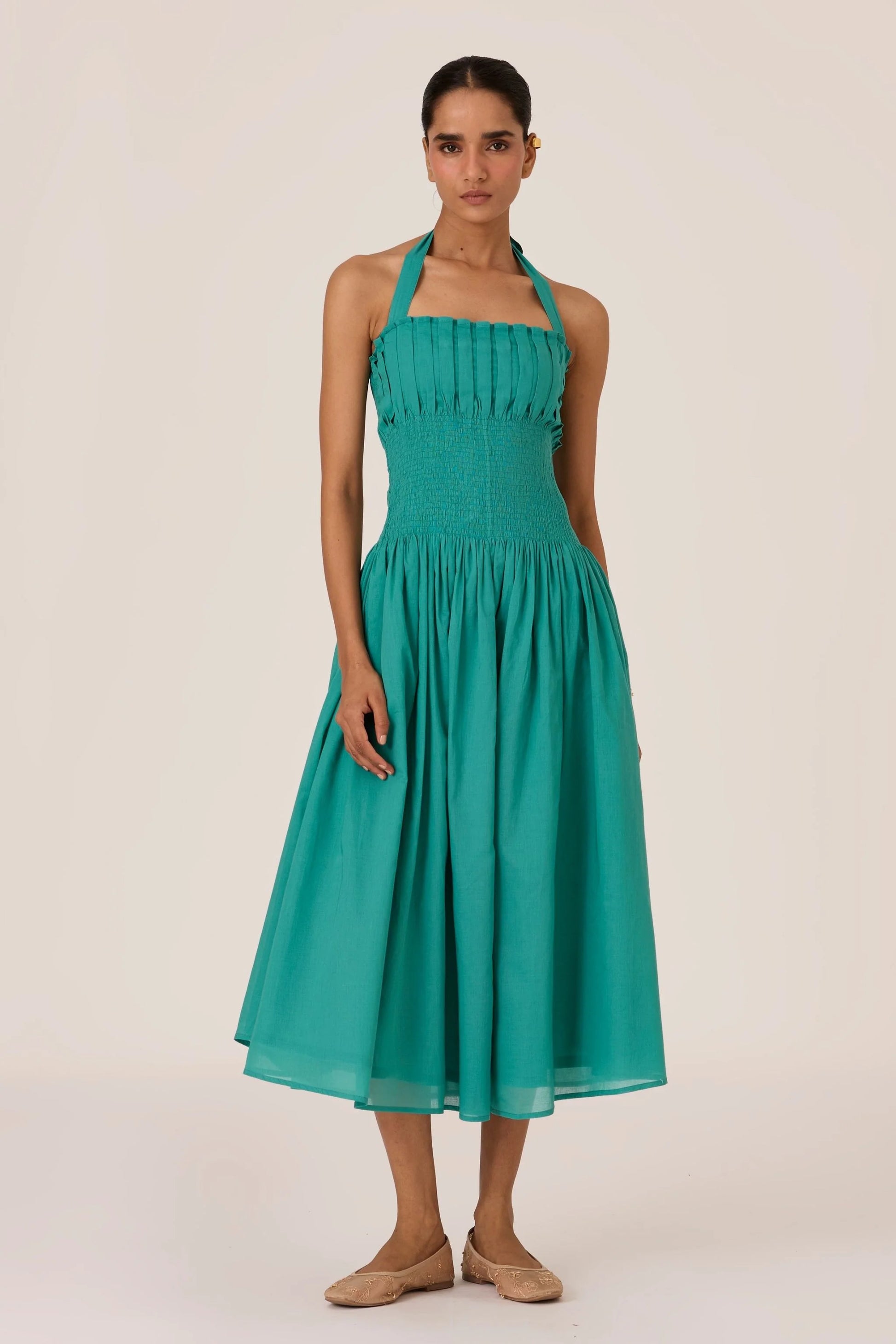 Aisha | Cyan Pleated Midi Dress