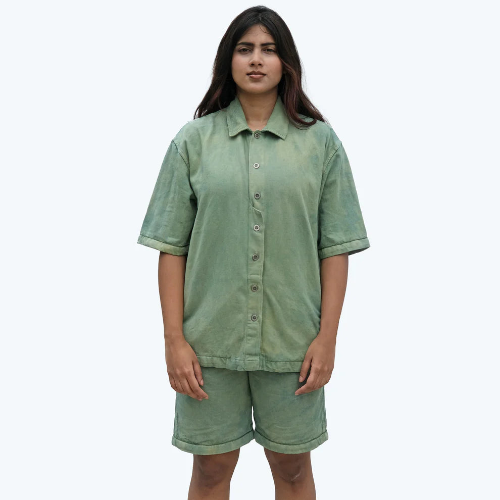 Colour: Algae green. (Naturally crush tie dyed with indigo and marigold)