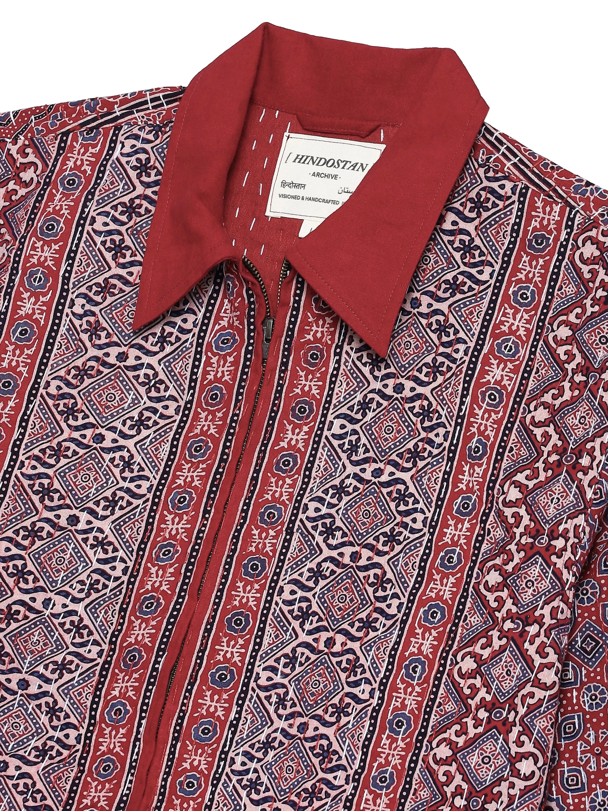 Ajrakh hand-block printed with natural dyes and Kantha embroidery hand-stitched throughout.
