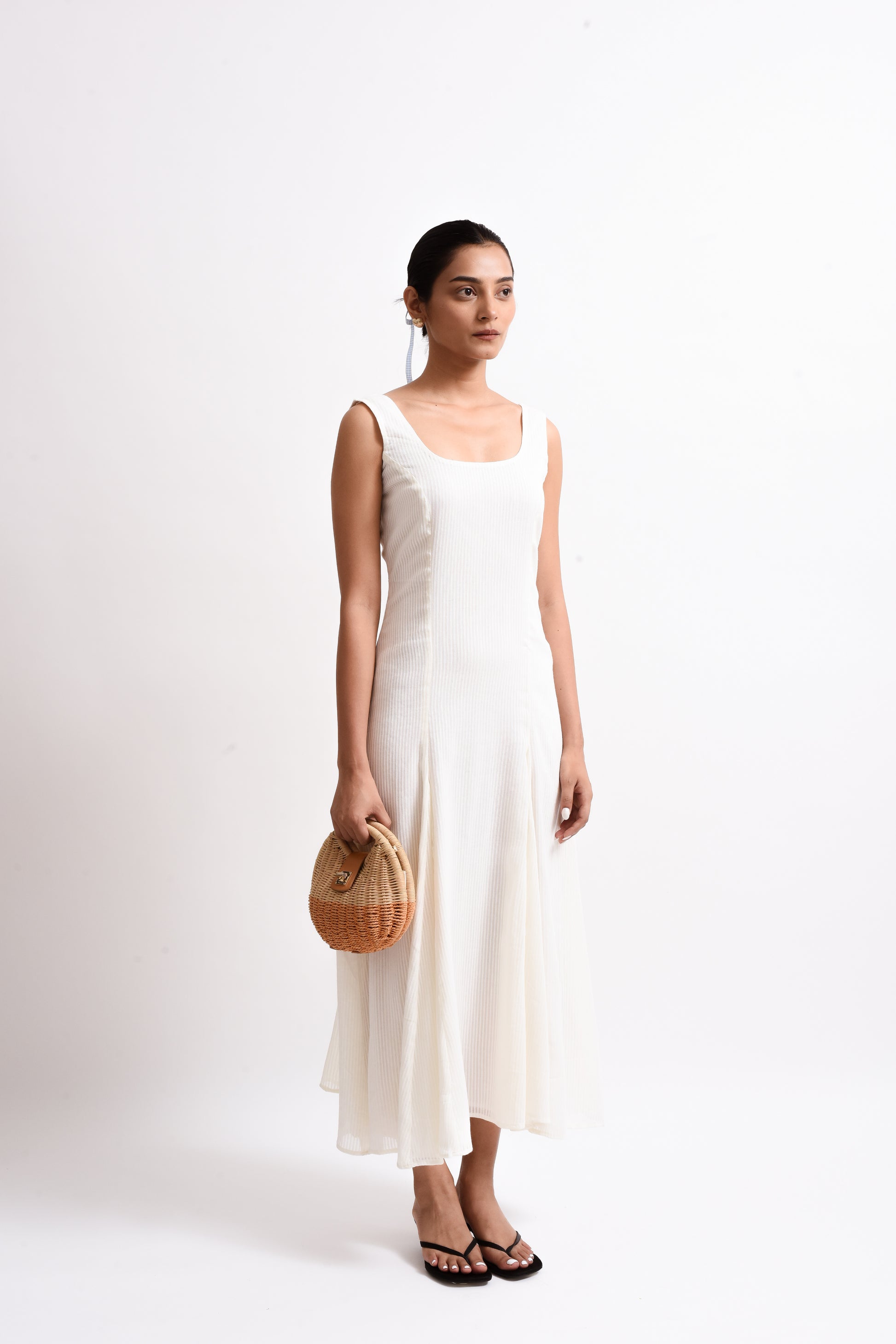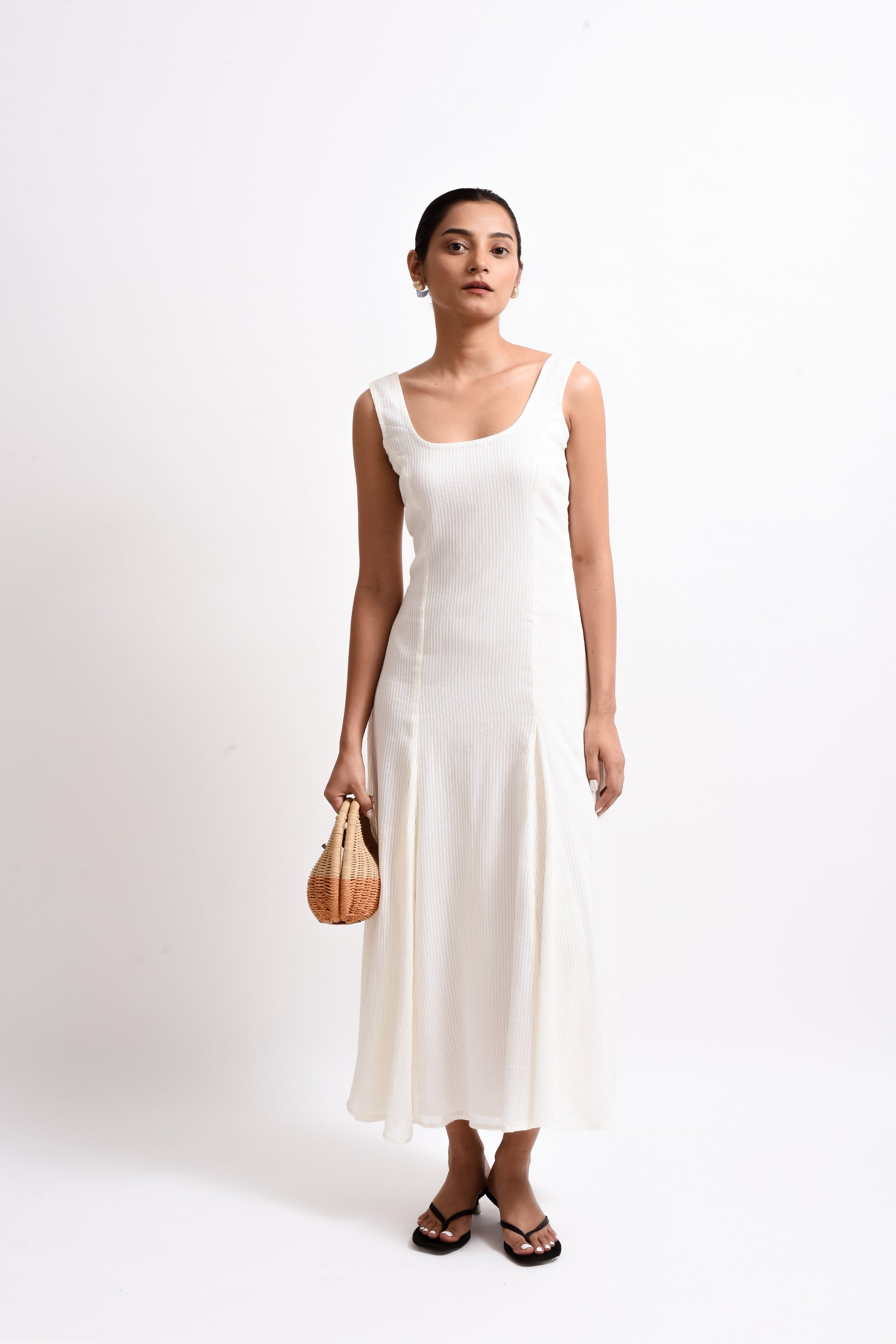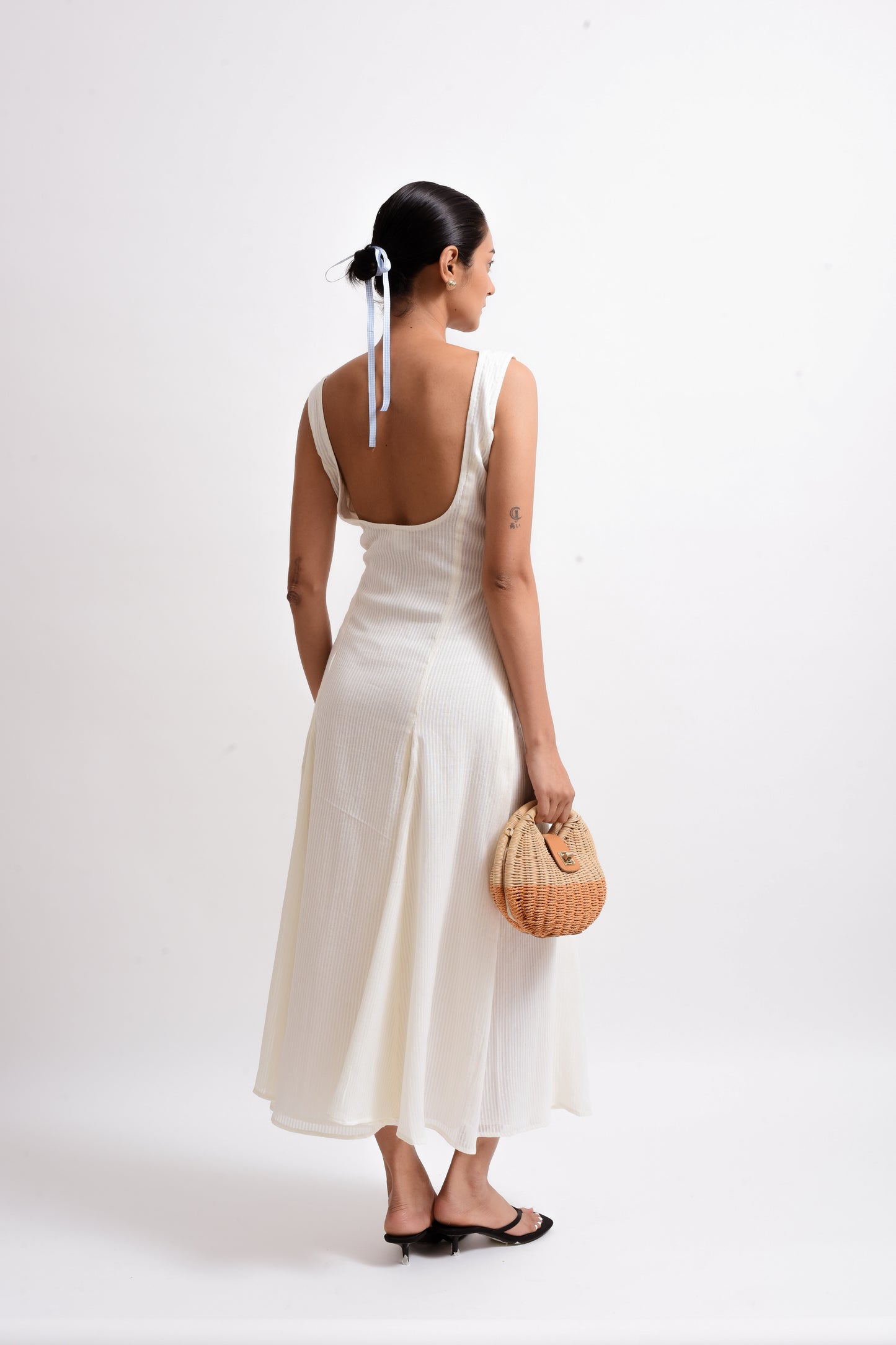 The Ayrah Dress is a stunning maxi featuring a low round neckline in front and back, sleeveless design, and a fitted bust and waist that gracefully flares into a voluminous skirt. Fully lined with a back zipper opening, this elegant dress is perfect for making a statement at any occasion.