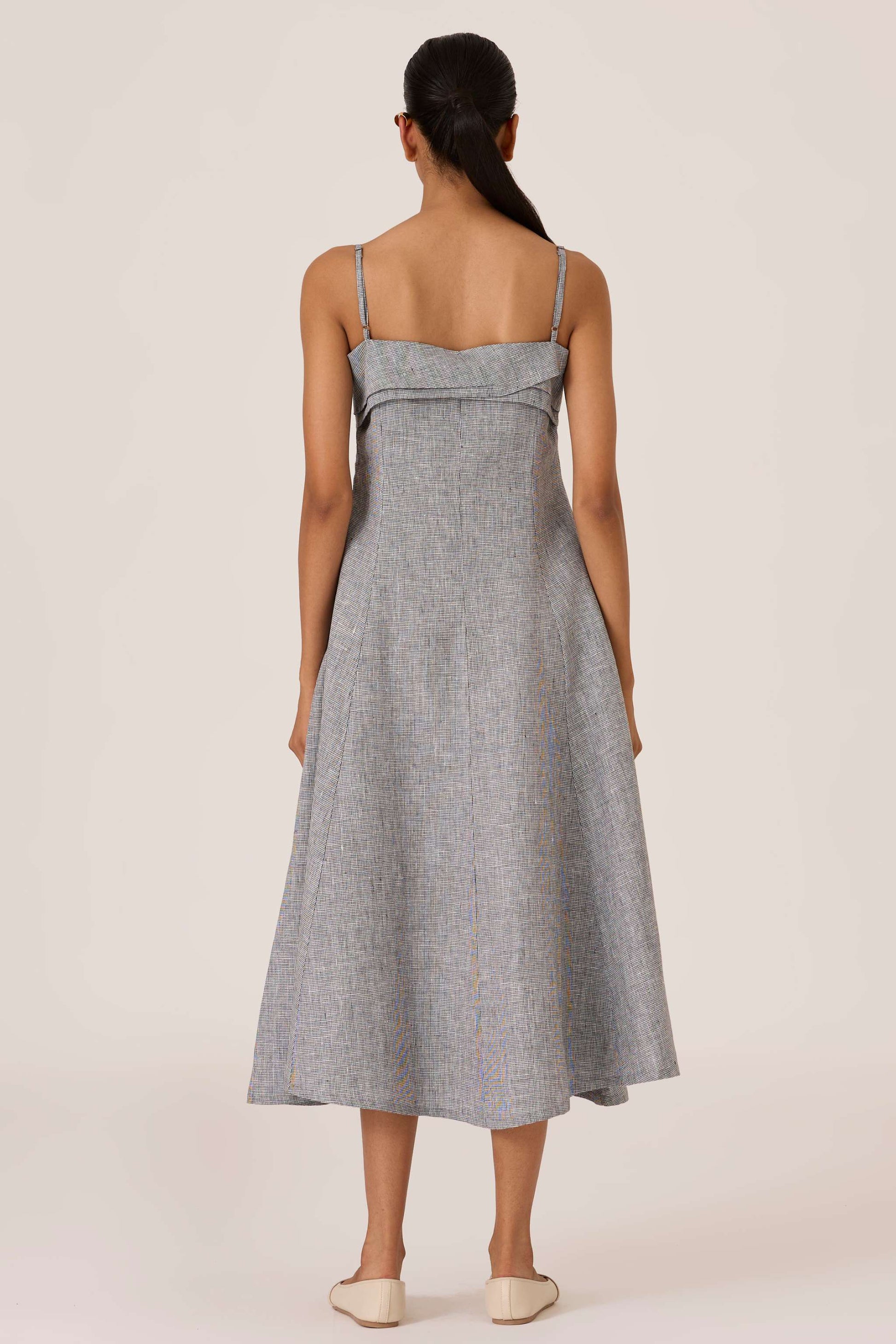 Classic summer linen dress. Flattering flow that gently shapes at the waist. Adjustable straps. Fully lined. In-seam pockets.