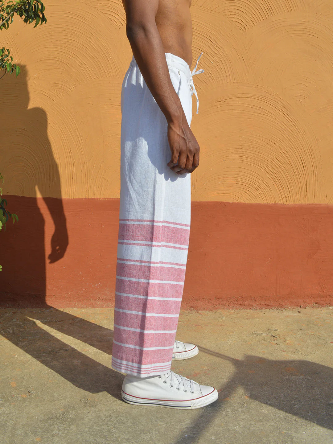 Experience the essence of Jharkhand's rich heritage with these unisex pants crafted from Betra Luga, a traditional handloom textile. Made of pure cotton, these coral pants offer a regular fit, ensuring both comfort and style. Originally used by Tribal and non-tribal women to carry their babies, Betra Luga fabric brings cultural significance and timeless craftsmanship to modern fashion.