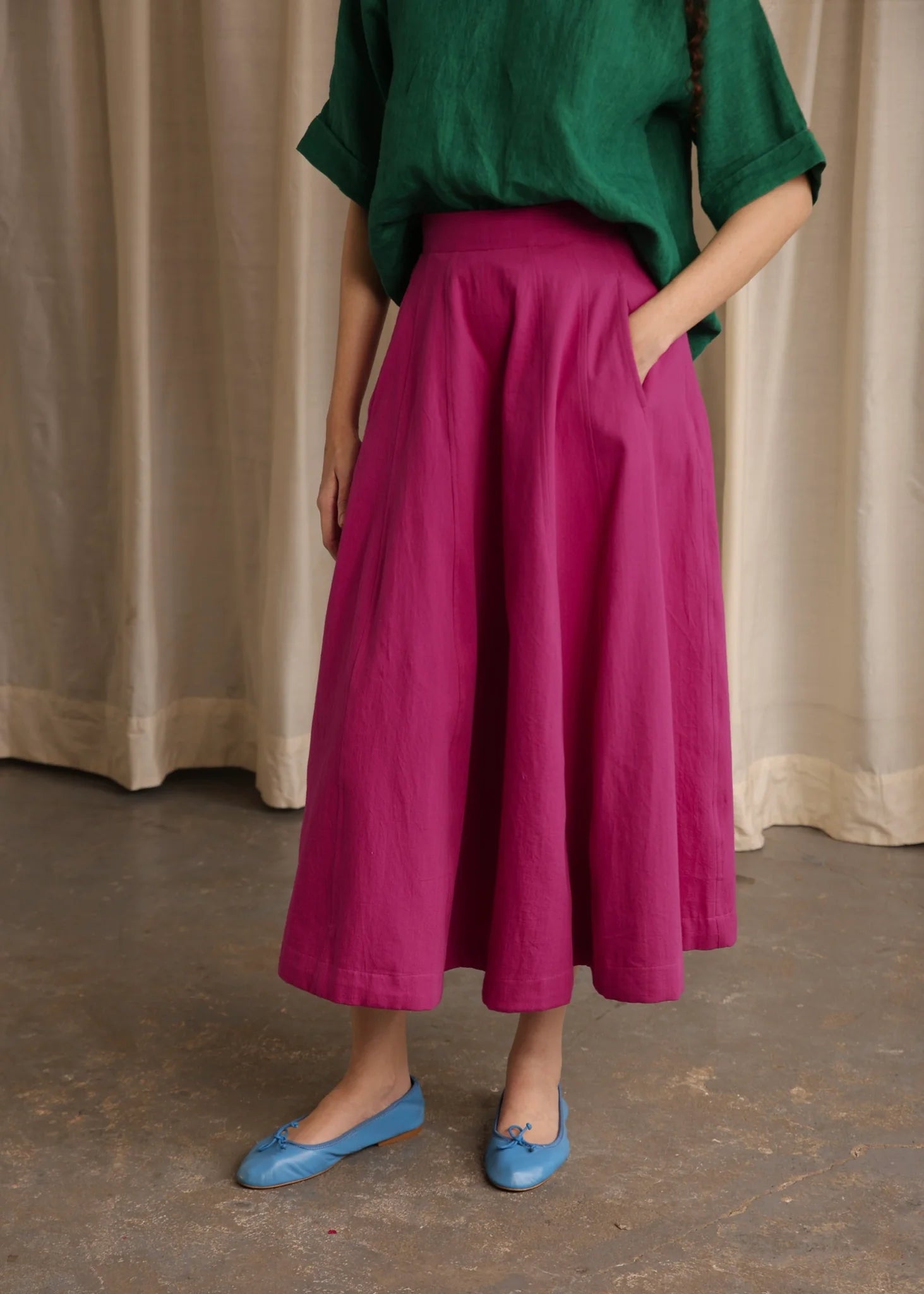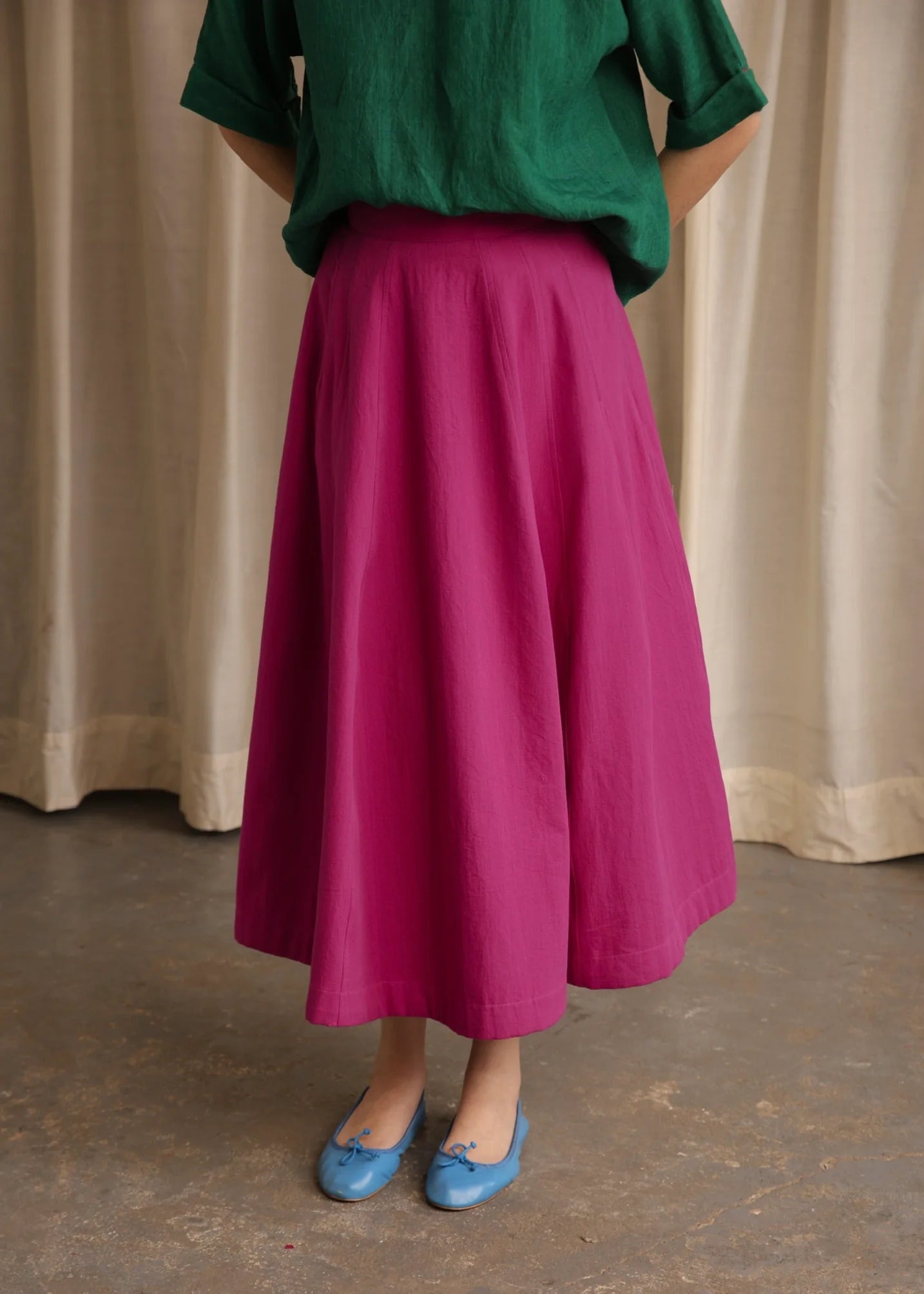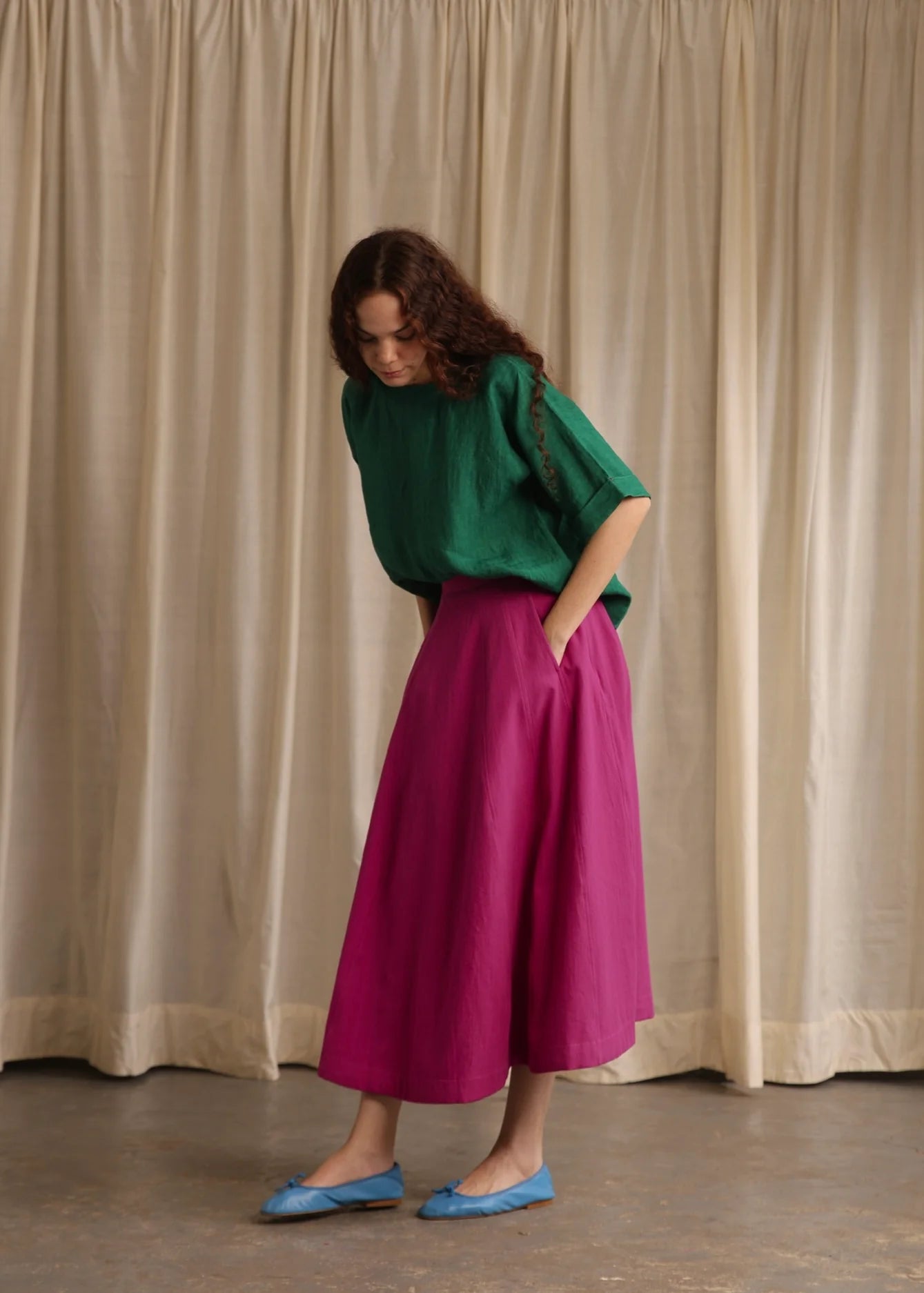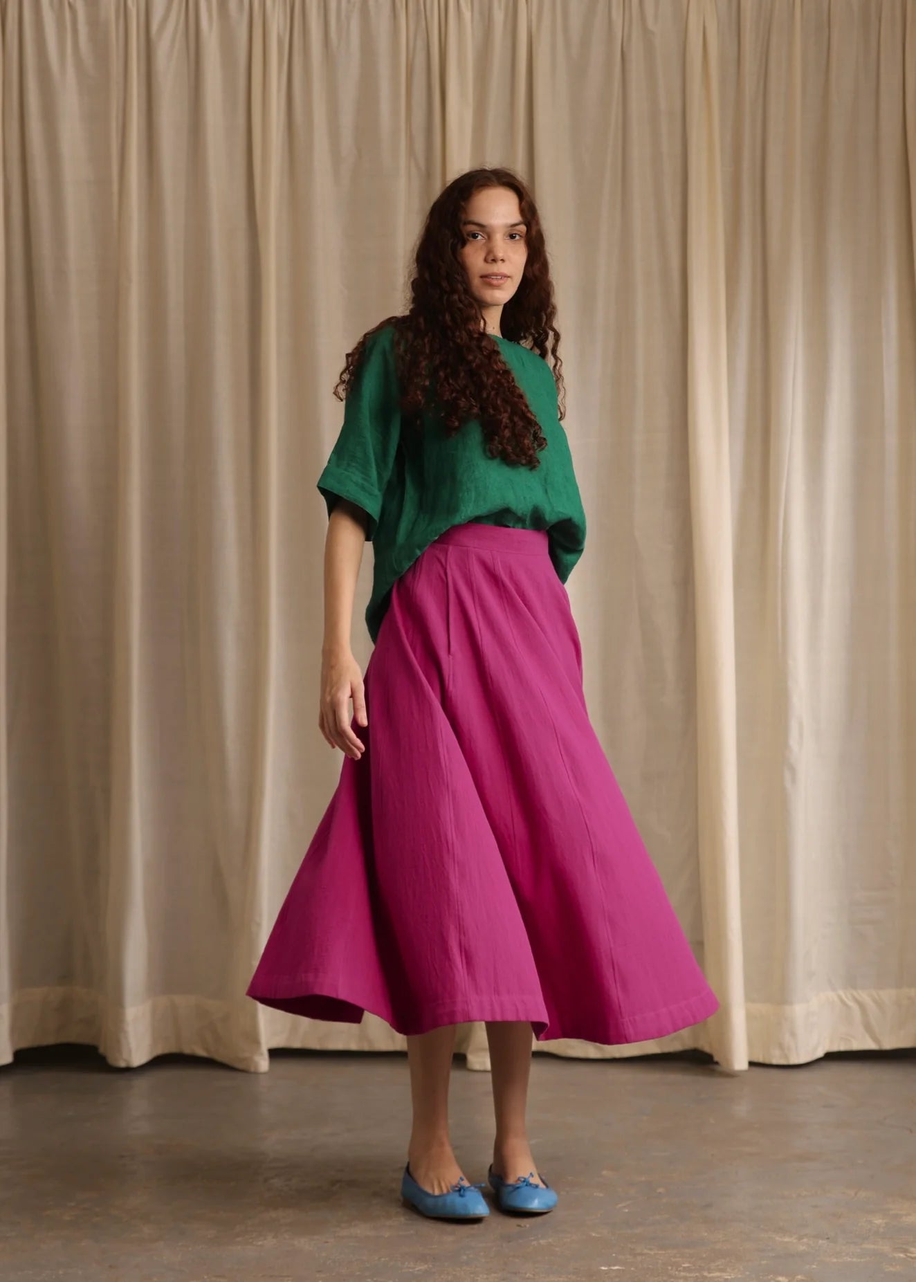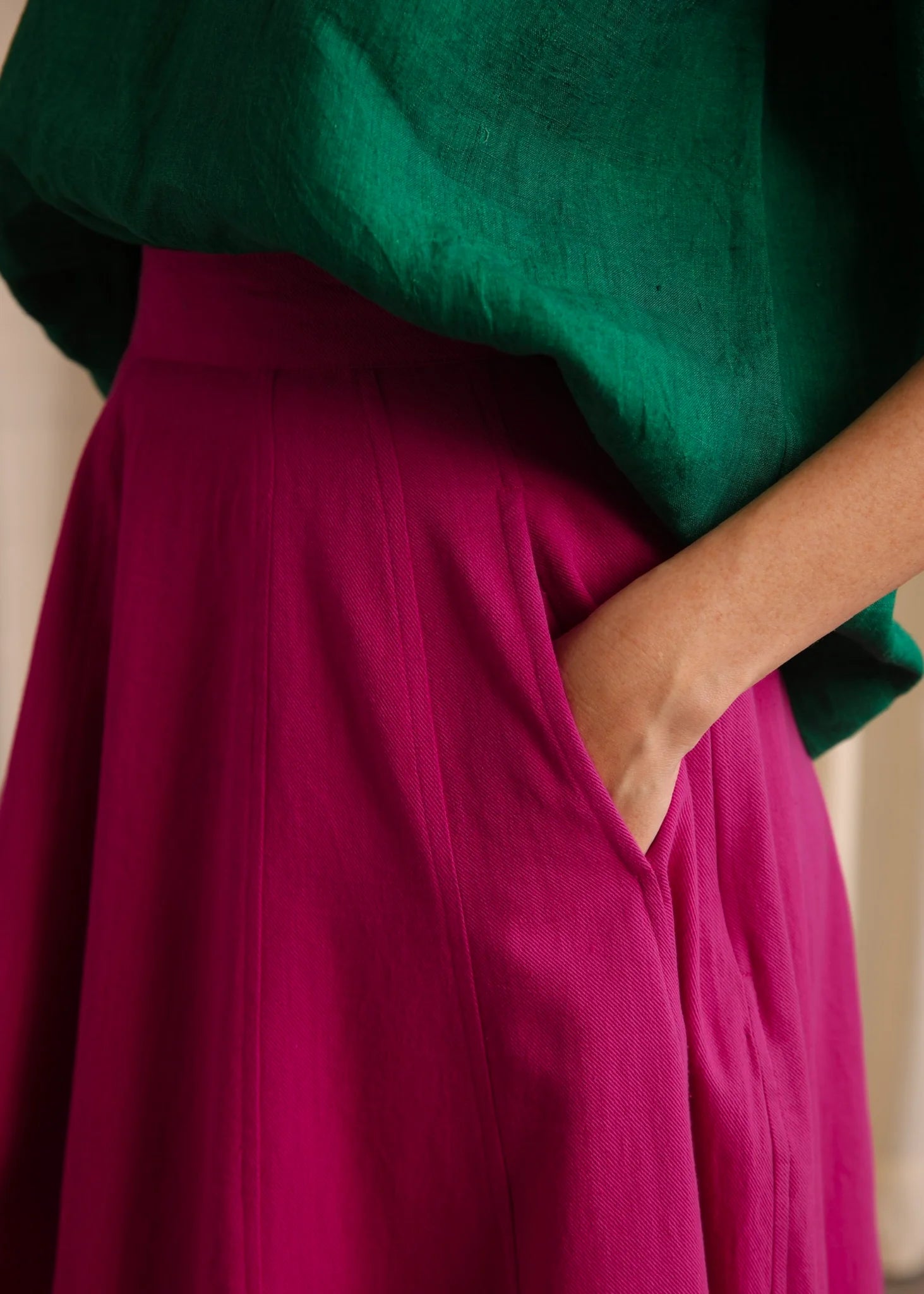 Crafted from handwoven cotton checks in green with contrasting pink lines, these super-wide-leg pants flow like a skirt. Heavily pleated at the waist, with a side zip and pockets, this pair of skirt pants comes lined with a soft cotton fabric.