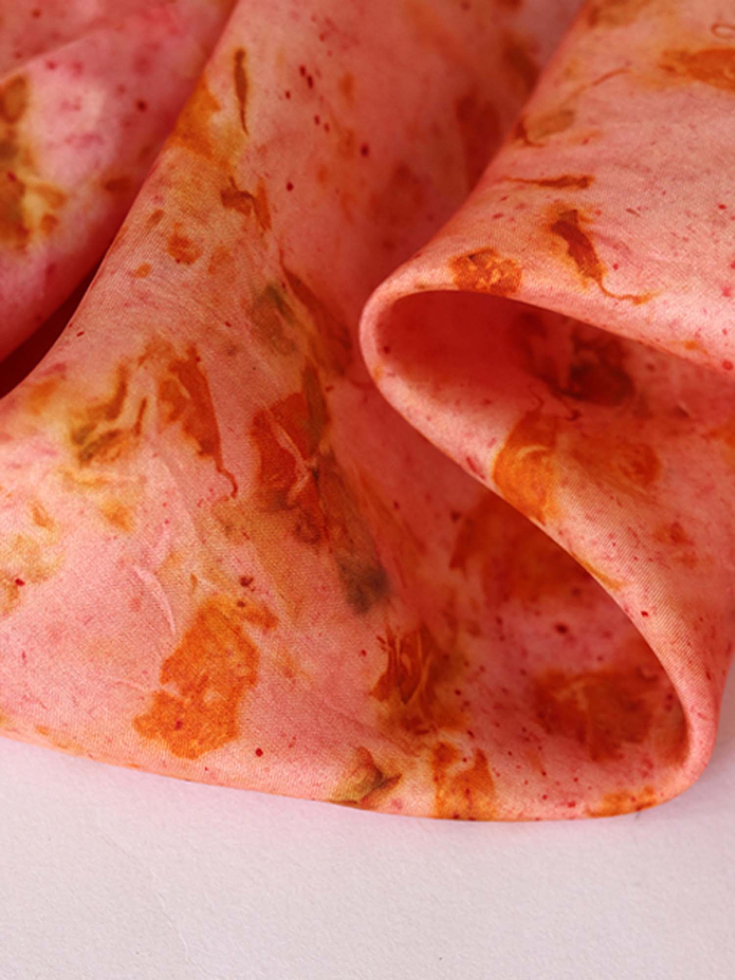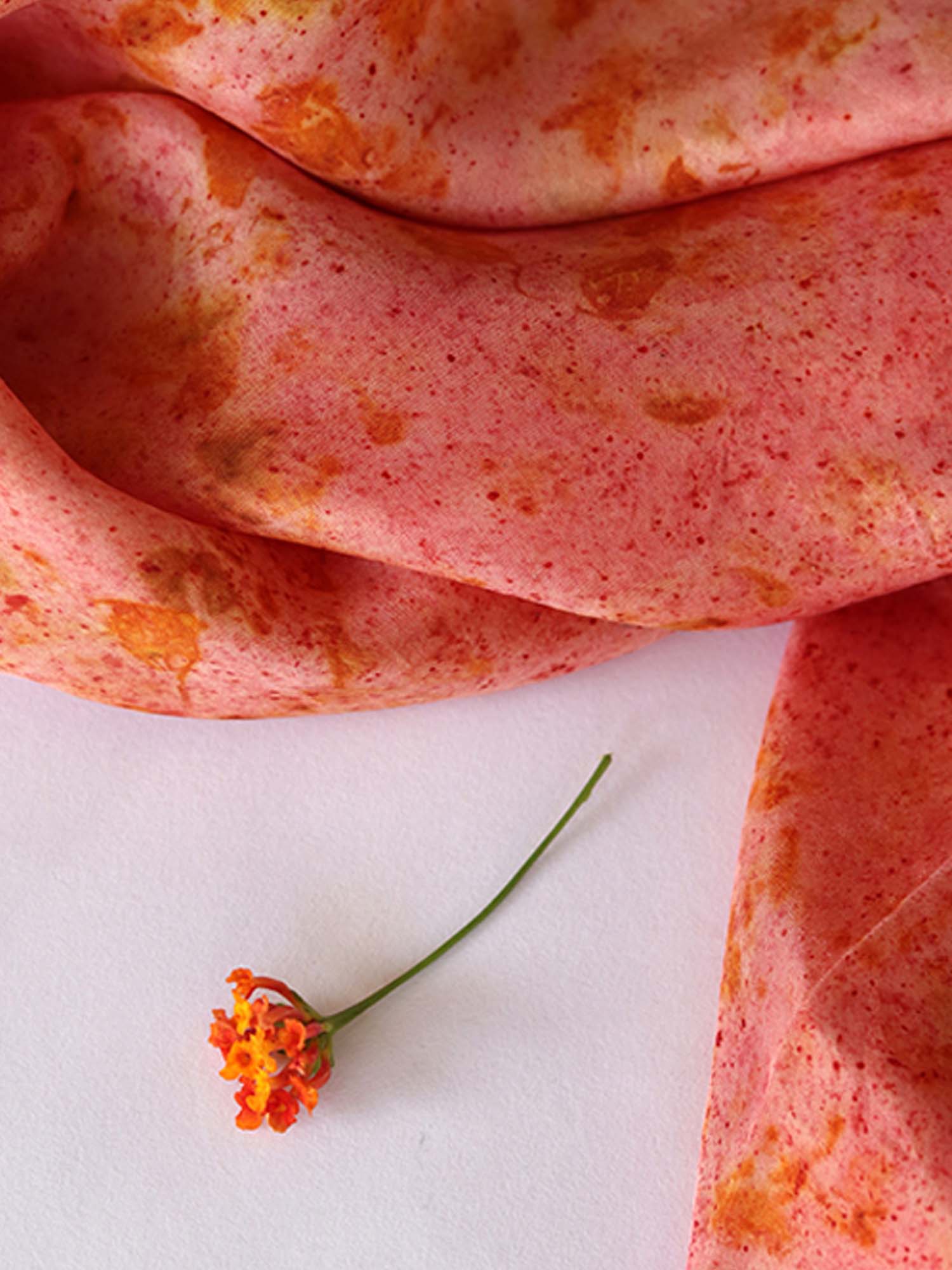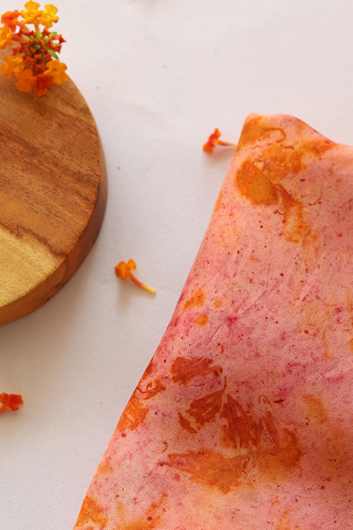 Elevate your textile experience with our exclusive fabric collection. Each piece is meticulously eco-printed with temple flowers, capturing the essence of nature and the sophistication of HABUTAI SILK. Mulya fabric, 44 inches wide, boasts unparalleled beauty and comfort, crafted entirely from luxurious silk. Handmade by skilled artisans from the Himalayan region, each piece is a unique masterpiece