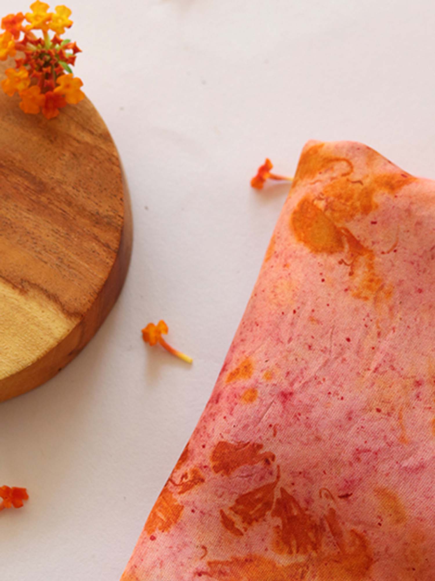 Mulya believes in the transformative power of nature’s palette. The dyes used in its textiles are sourced from flowers, leaves, and barks, many of which are collected from local temples, weaving stories and memories into every piece. Through its eco-printing process, Mulya pays tribute to the Earth, minimizing waste while celebrating the intricate beauty of natural elements. This ensures that no two creations are ever alike.