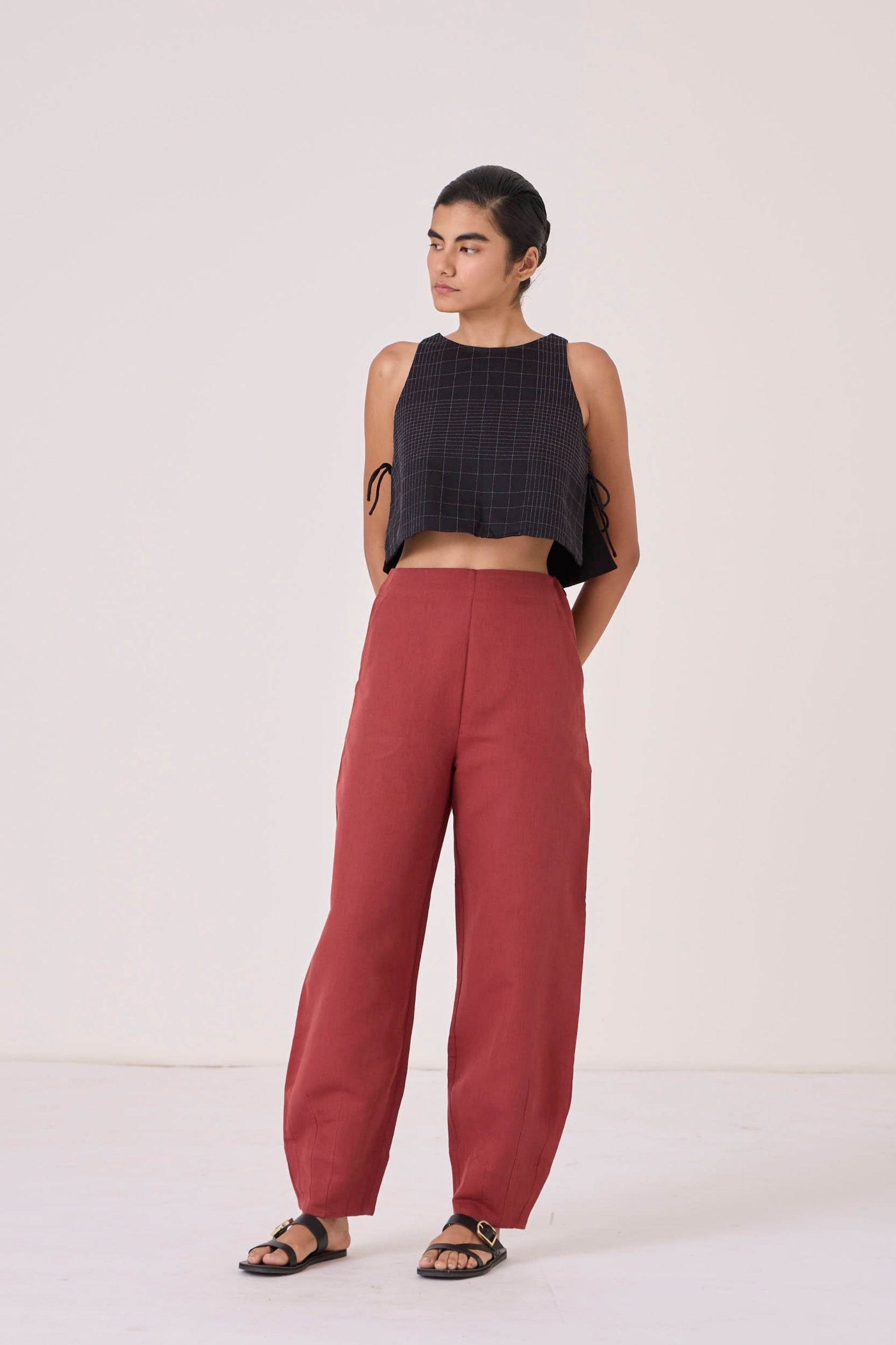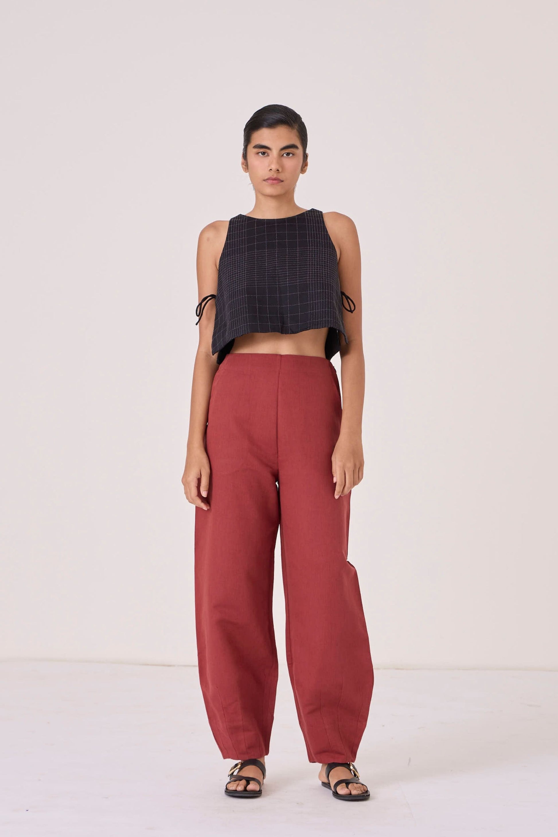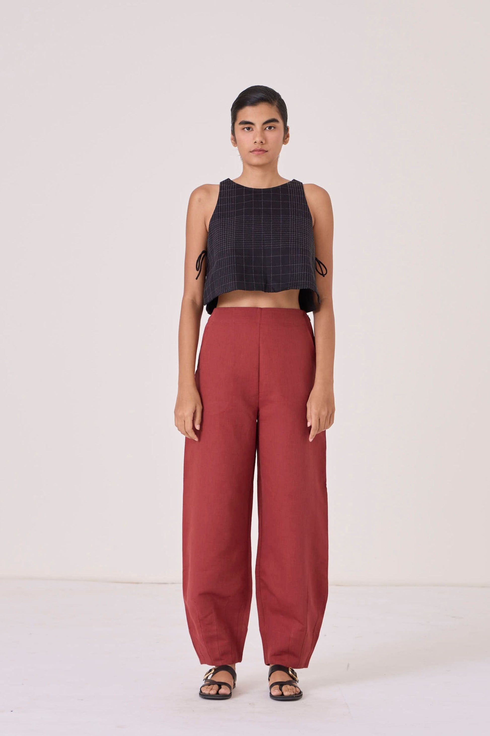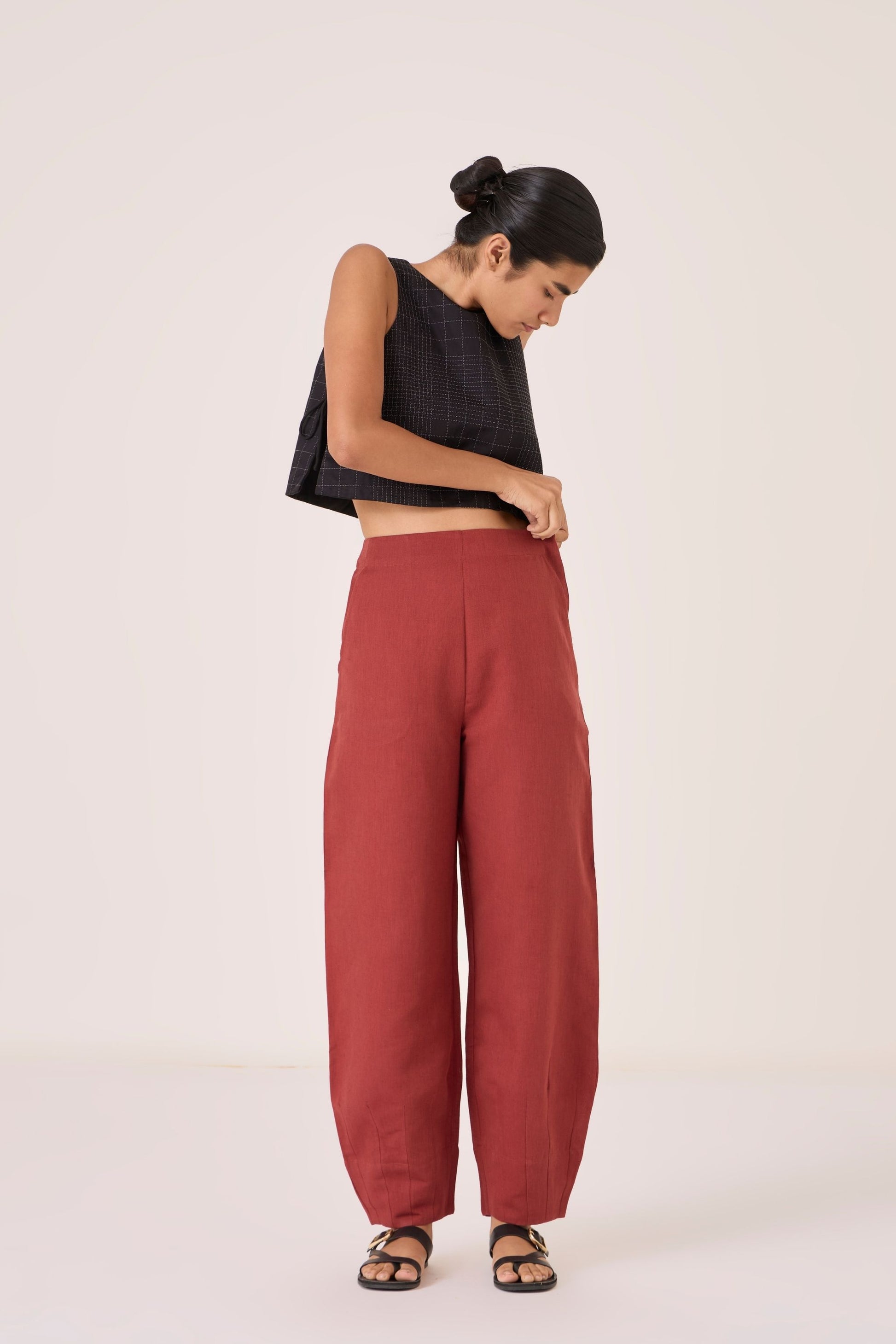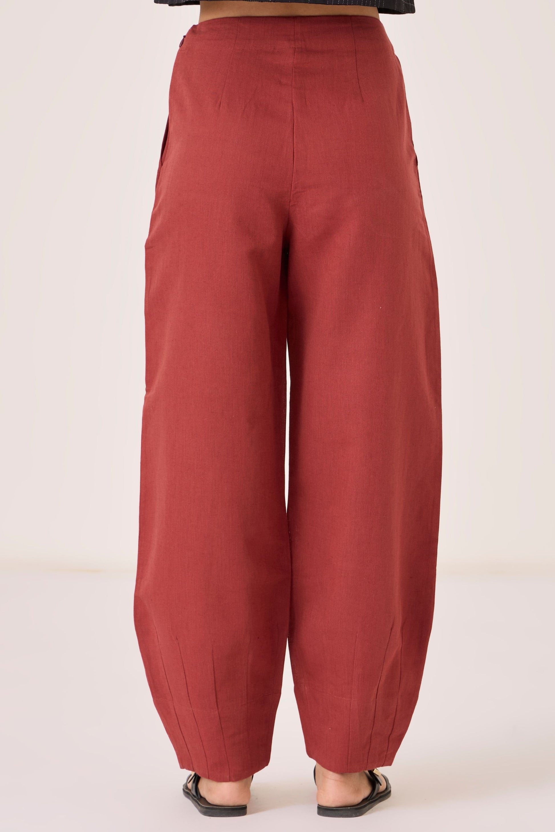 - Barrel leg trousers