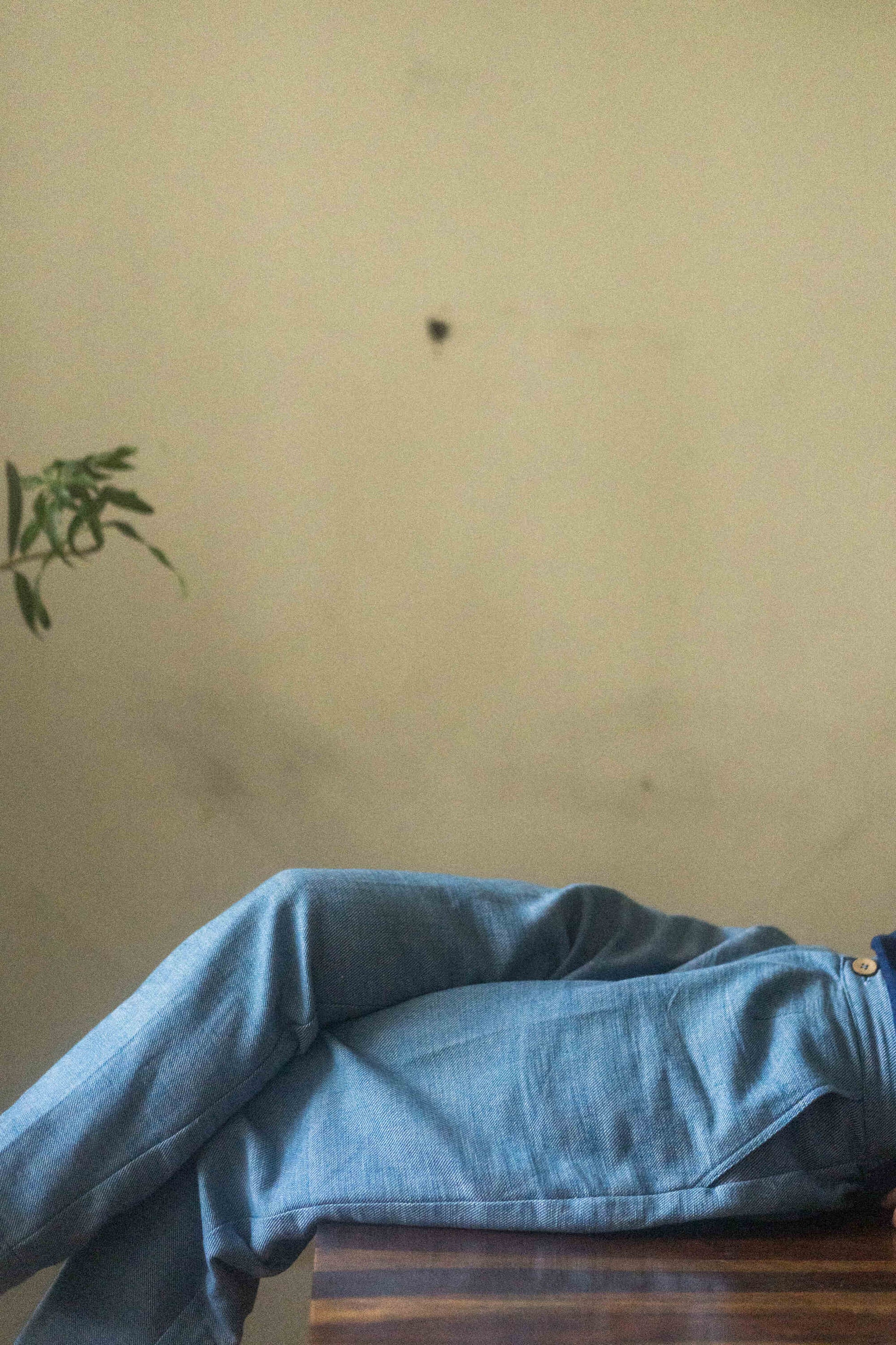 Made in twill weave, in what is a light-weight denim. Elasticated waist at the back, button closure in the front. These pants have plenty pockets-- two on either sides and two at the back.