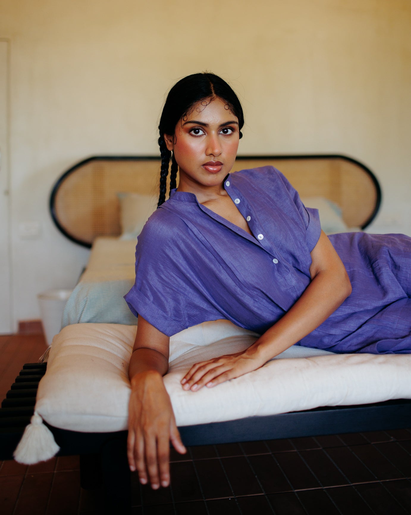We believe all fabrics deserve to be treated well, and our fabrics are particularly delicate and lightweight. So please remember to be gentle when you wash your piece. Avoid scrubbing. We recommend you use a liquid detergent for washing. Colors tend to last longer if clothes are not exposed to direct sunlight.