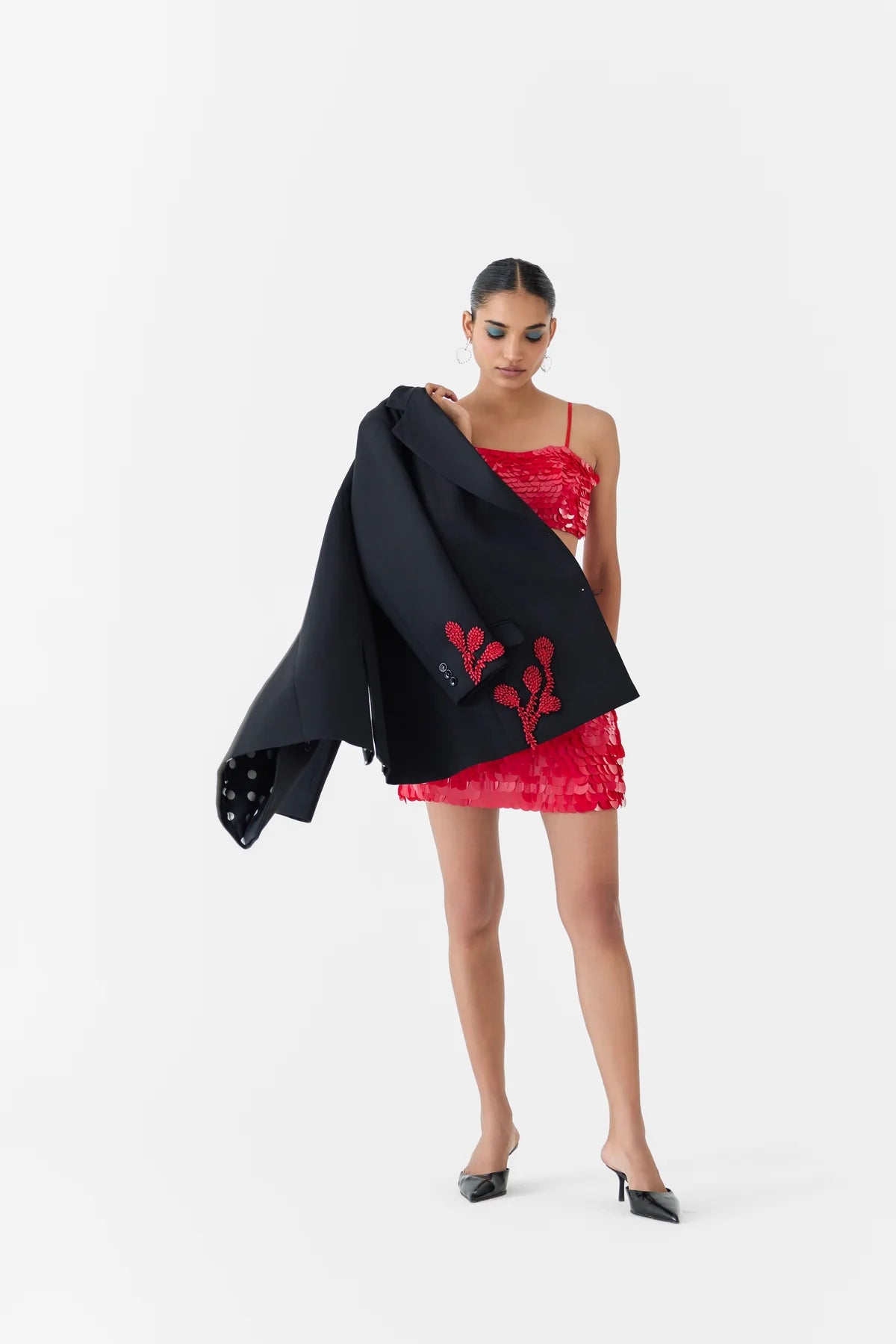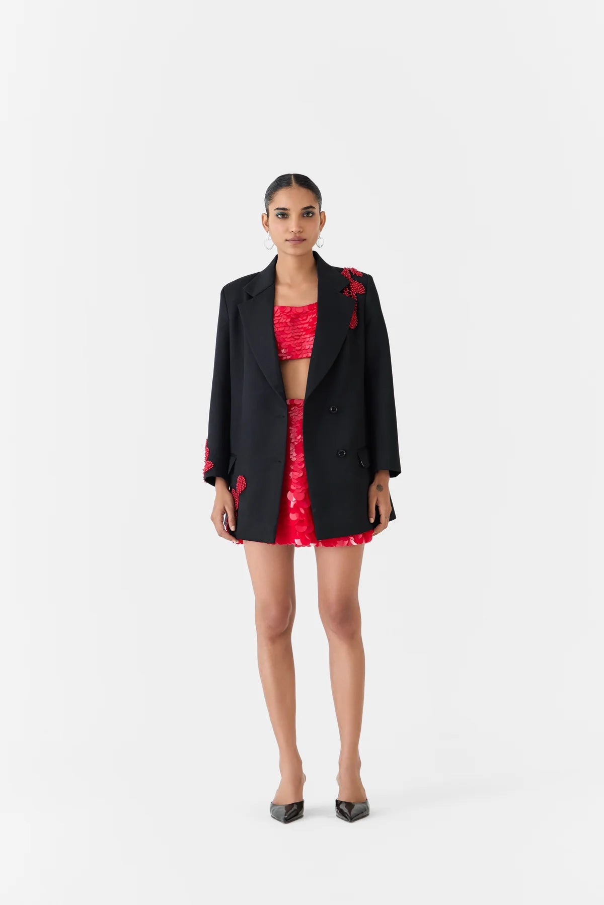 Red Crane | Blazer and Draped Skirt Co-ord Set