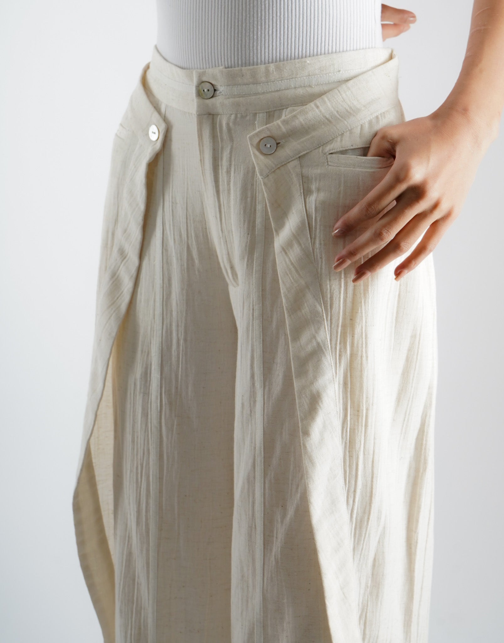 The design of Saldon Summers embraces the organic beauty of handwoven textiles with its self-slubby nature and natural wrinkles. These elements add depth and character to the fabric, giving it a relaxed yet refined appeal. The inherent slubs and gentle creases celebrate the raw, unprocessed charm of handloom craftsmanship, making each piece unique and effortlessly stylish.