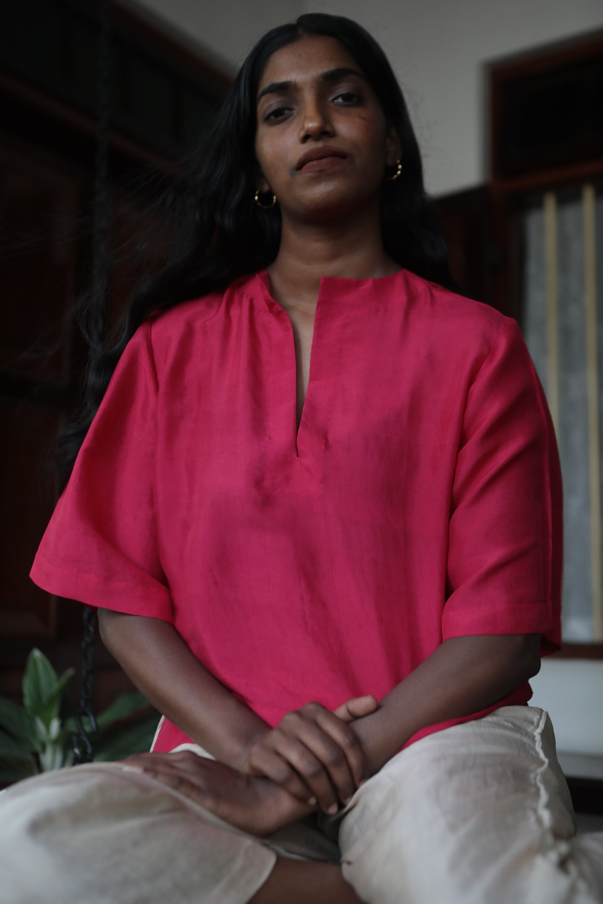 At its core, with N. celebrates simplicity and slowness. The label does not follow seasonal drops. Instead, it introduces pieces organically—when inspiration strikes, or when a textile speaks to them in a way that cannot be ignored. Each garment embraces the quiet irregularities of handloom—loose threads, slight variations, and asymmetry that signal the unmistakable presence of the human hand. It is this celebration of imperfection that defines with N.’s design language.