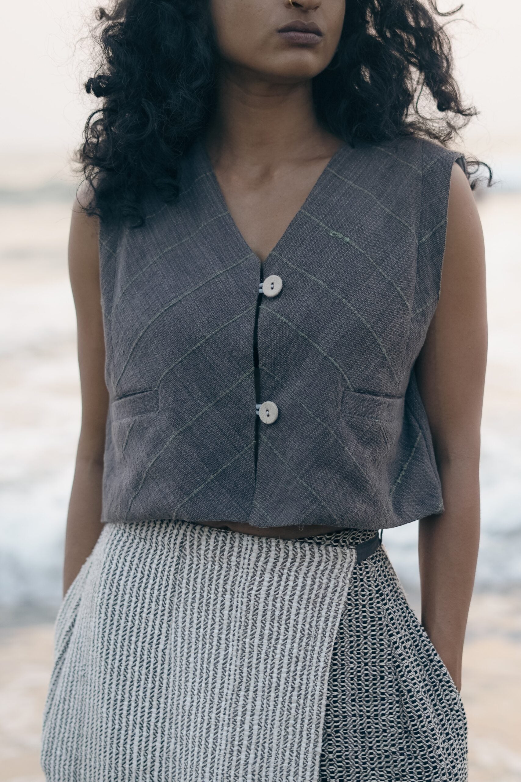 IRO IRO collects offcut waste from garment factories. All these offcuts have been cut into tiny scraps and tediously sewn back together to form a liner yarn. This liner yarn is then hand-woven into our fabric. This process is time-consuming and difficult but it is as beautifully unique as it is kind to the planet.