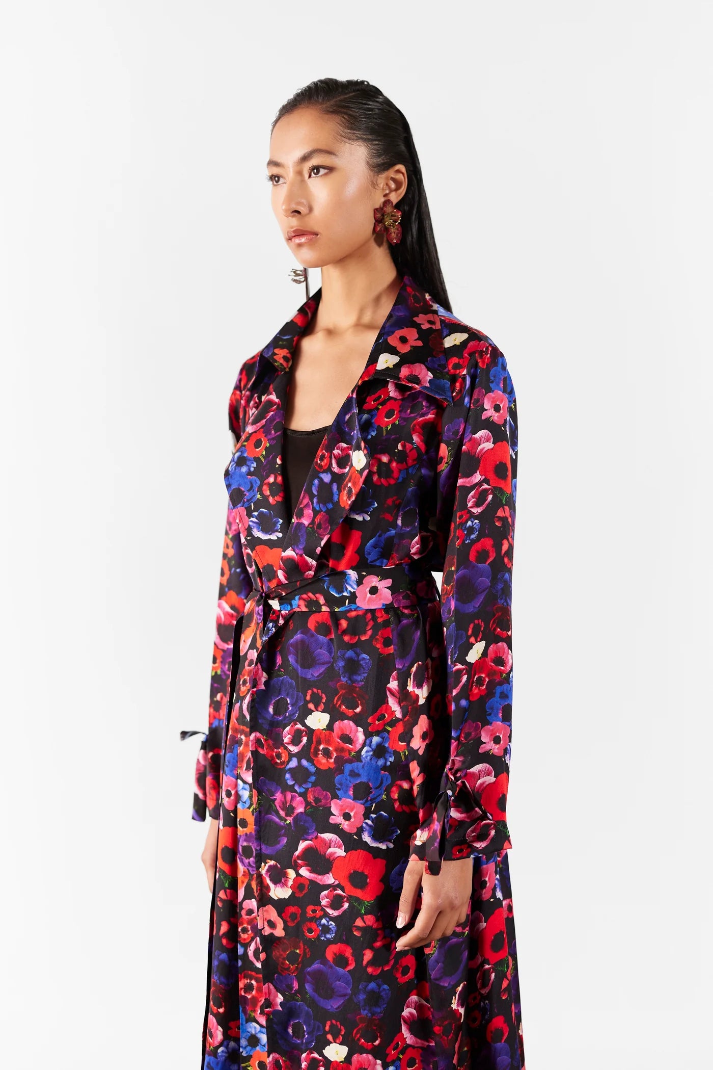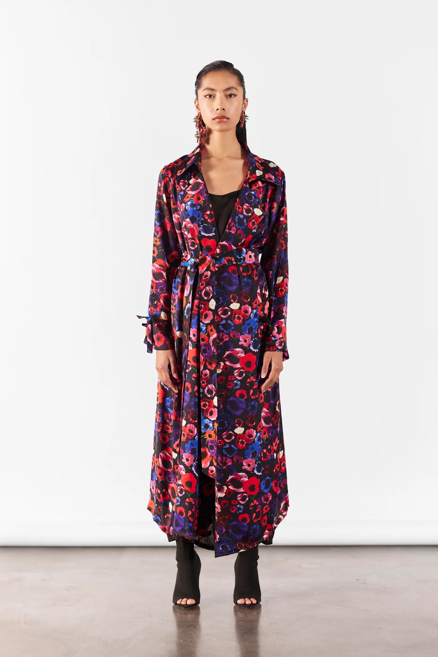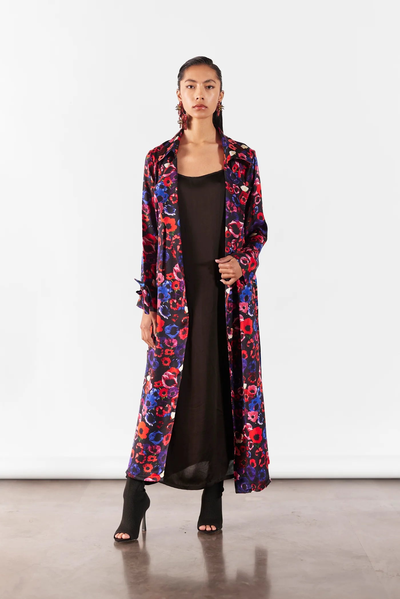The Peony Boxy Blazer crafted from our stunning Vegan silk fabrication, trans-seasonal, is a statement piece. Made in our hand drawn Peony print inspired by the bloom of peonies, it has a boxy over-sized fit. A chic outerwear with lapel, it is lined. Featuring pockets, this piece is a classic and can be styled in different ways. Pair it with our Peony Organza trousers. Wear it with heels for an elegant look.