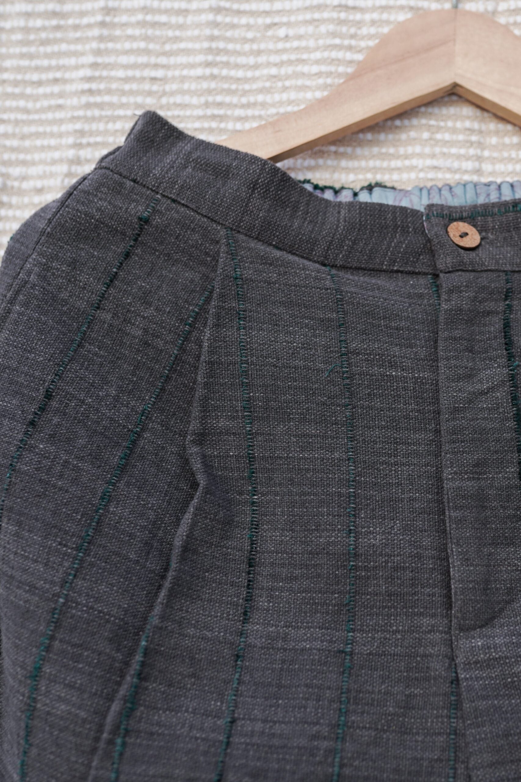 IRO IRO collects offcut waste from garment factories. All these offcuts have been cut into tiny scraps and tediously sewn back together to form a liner yarn. This liner yarn is then hand-woven into our fabric. This process is time-consuming and difficult but it is as beautifully unique as it is kind to the planet.