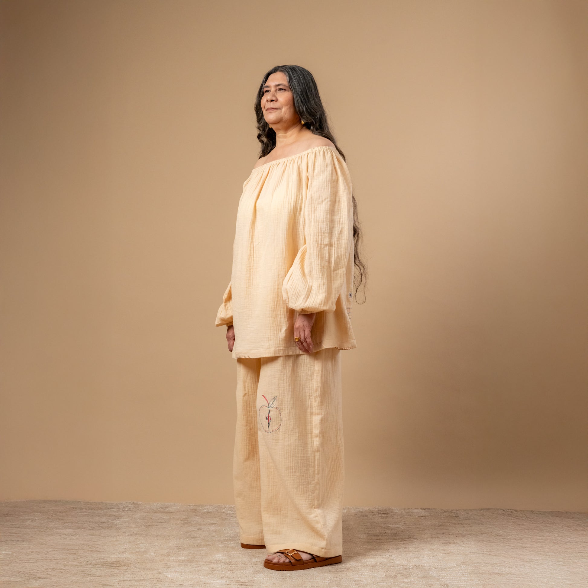 Doodlage is a circular Fashion house. They upcycle factory waste into short limited edition collections. Recycle post consumer waste and post cutting scraps into new fabrics to create season-less well finished garments made for longevity. Their fabric waste is segregated and converted into accessories, soft furnishing products and paper to make packaging or stationery products.