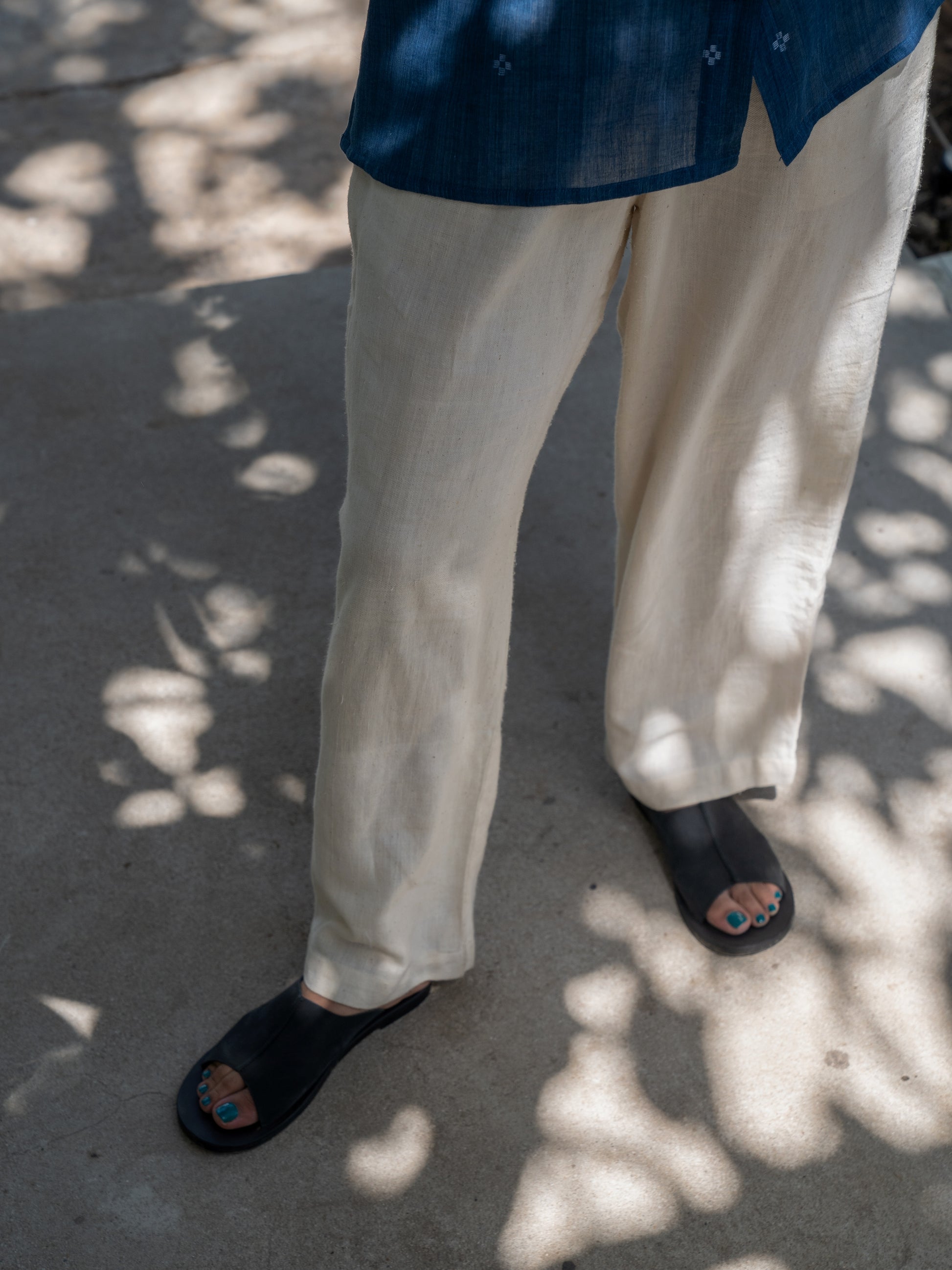 At its core, with N. celebrates simplicity and slowness. The label does not follow seasonal drops. Instead, it introduces pieces organically—when inspiration strikes, or when a textile speaks to them in a way that cannot be ignored. Each garment embraces the quiet irregularities of handloom—loose threads, slight variations, and asymmetry that signal the unmistakable presence of the human hand. It is this celebration of imperfection that defines with N.’s design language.