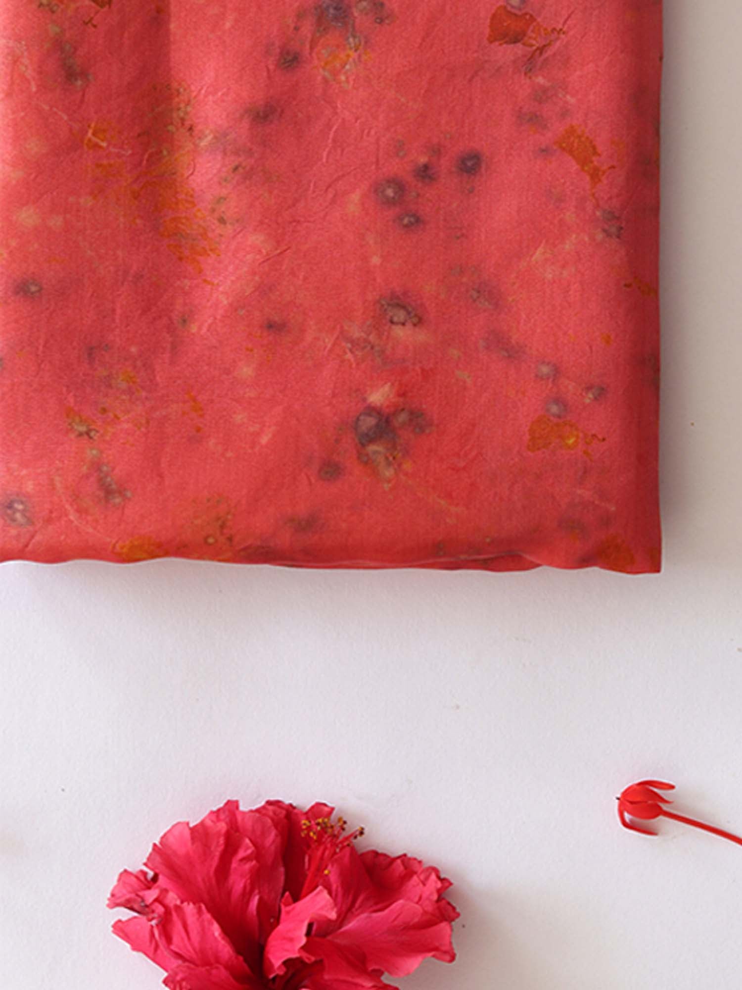 Elevate your textile experience with our exclusive fabric collection. Each piece is meticulously eco-printed with temple flowers, capturing the essence of nature and the sophistication of HABUTAI SILK. Mulya fabric, 44 inches wide, boasts unparalleled beauty and comfort, crafted entirely from luxurious silk. Handmade by skilled artisans from the Himalayan region, each piece is a unique masterpiece