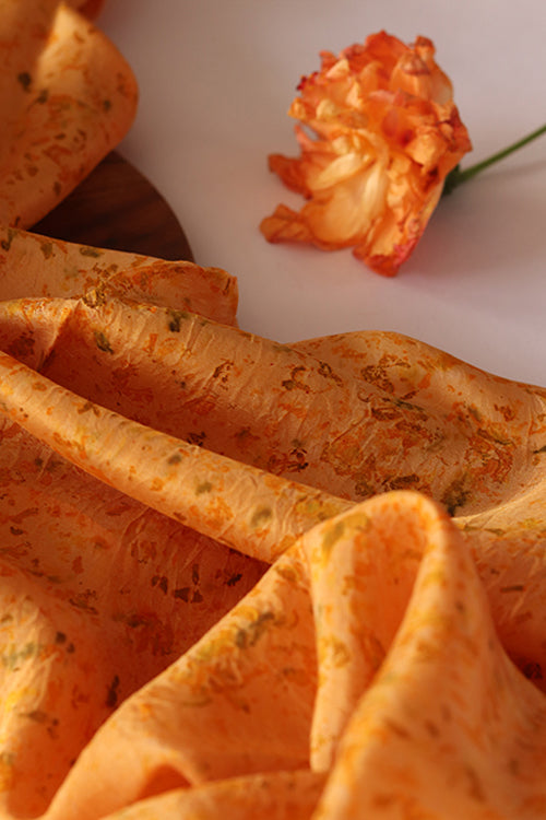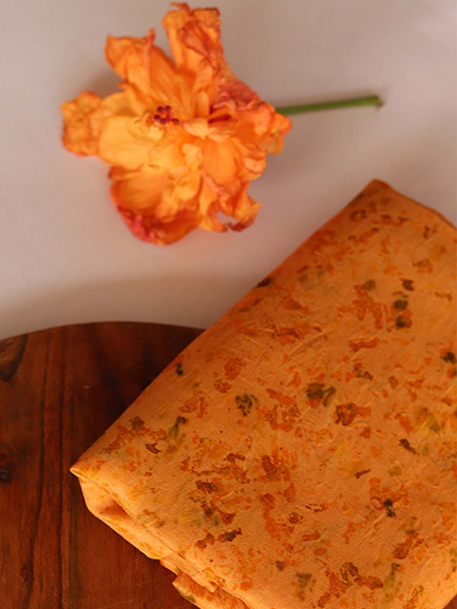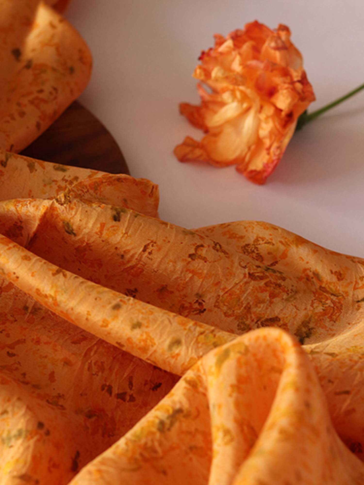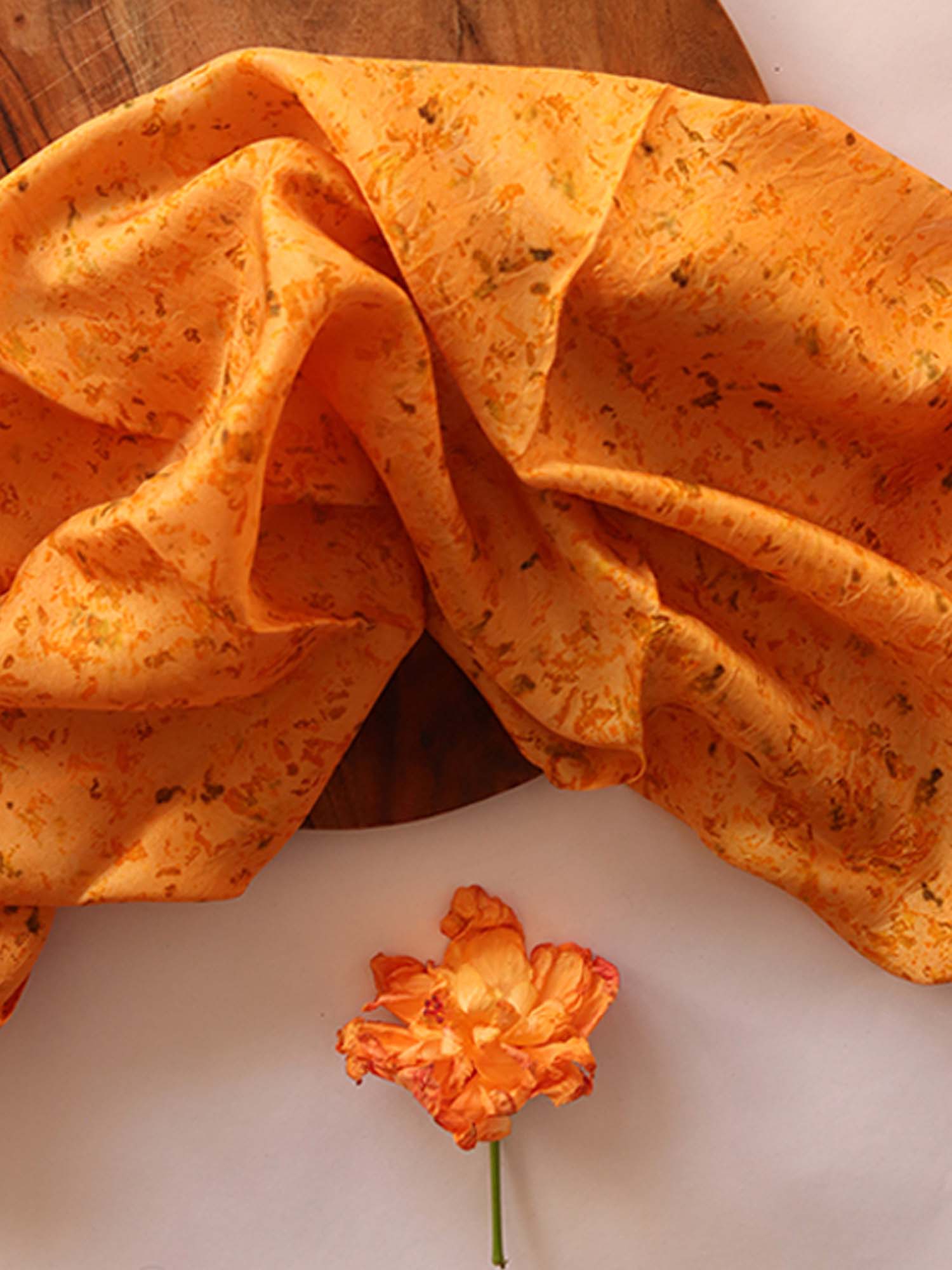 Elevate your textile experience with our exclusive fabric collection. Each piece is meticulously eco-printed with temple flowers, capturing the essence of nature and the sophistication of HABUTAI SILK. Mulya fabric, 44 inches wide, boasts unparalleled beauty and comfort, crafted entirely from luxurious silk. Handmade by skilled artisans from the Himalayan region, each piece is a unique masterpiece