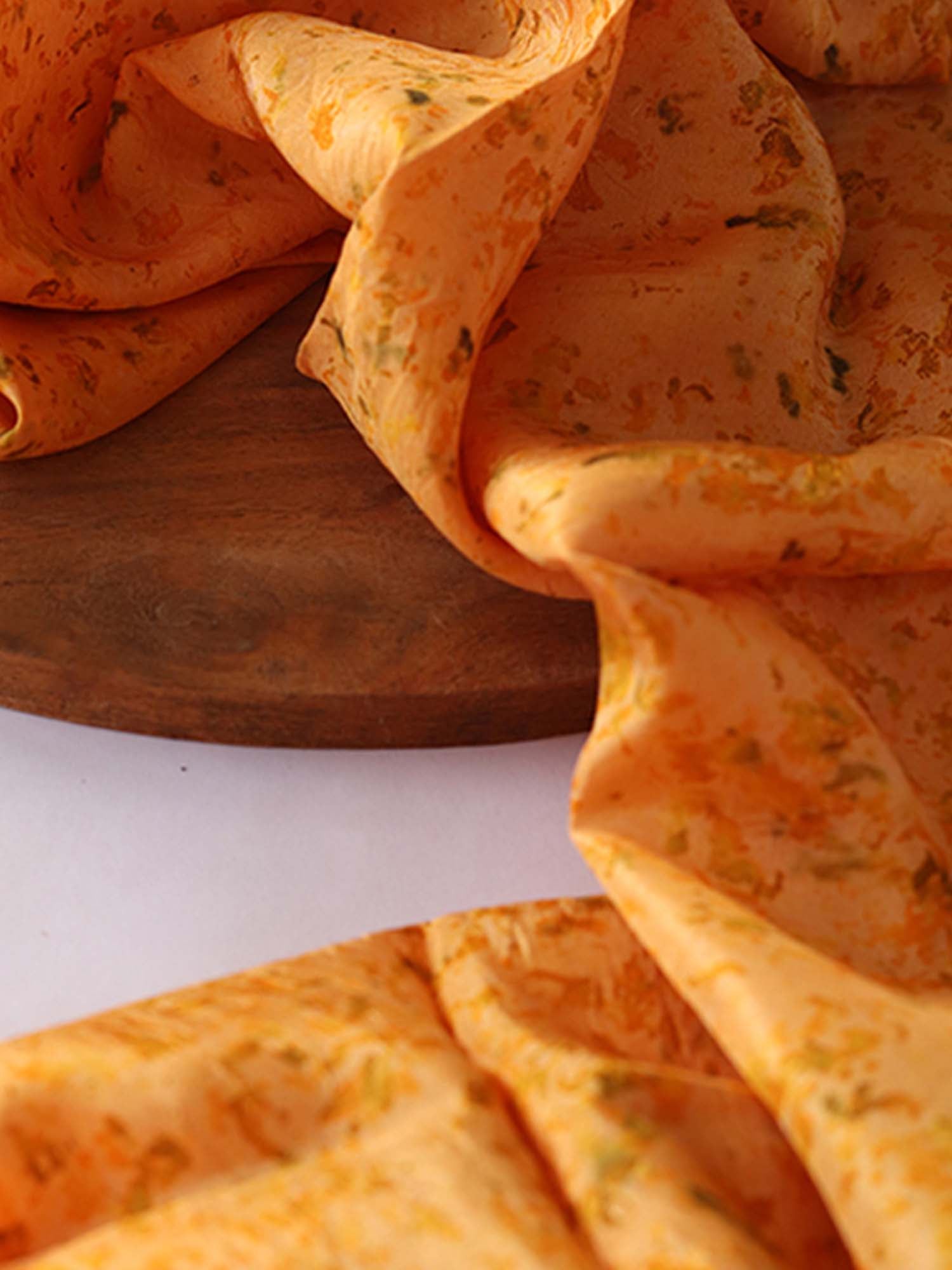 Mulya believes in the transformative power of nature’s palette. The dyes used in its textiles are sourced from flowers, leaves, and barks, many of which are collected from local temples, weaving stories and memories into every piece. Through its eco-printing process, Mulya pays tribute to the Earth, minimizing waste while celebrating the intricate beauty of natural elements. This ensures that no two creations are ever alike.
