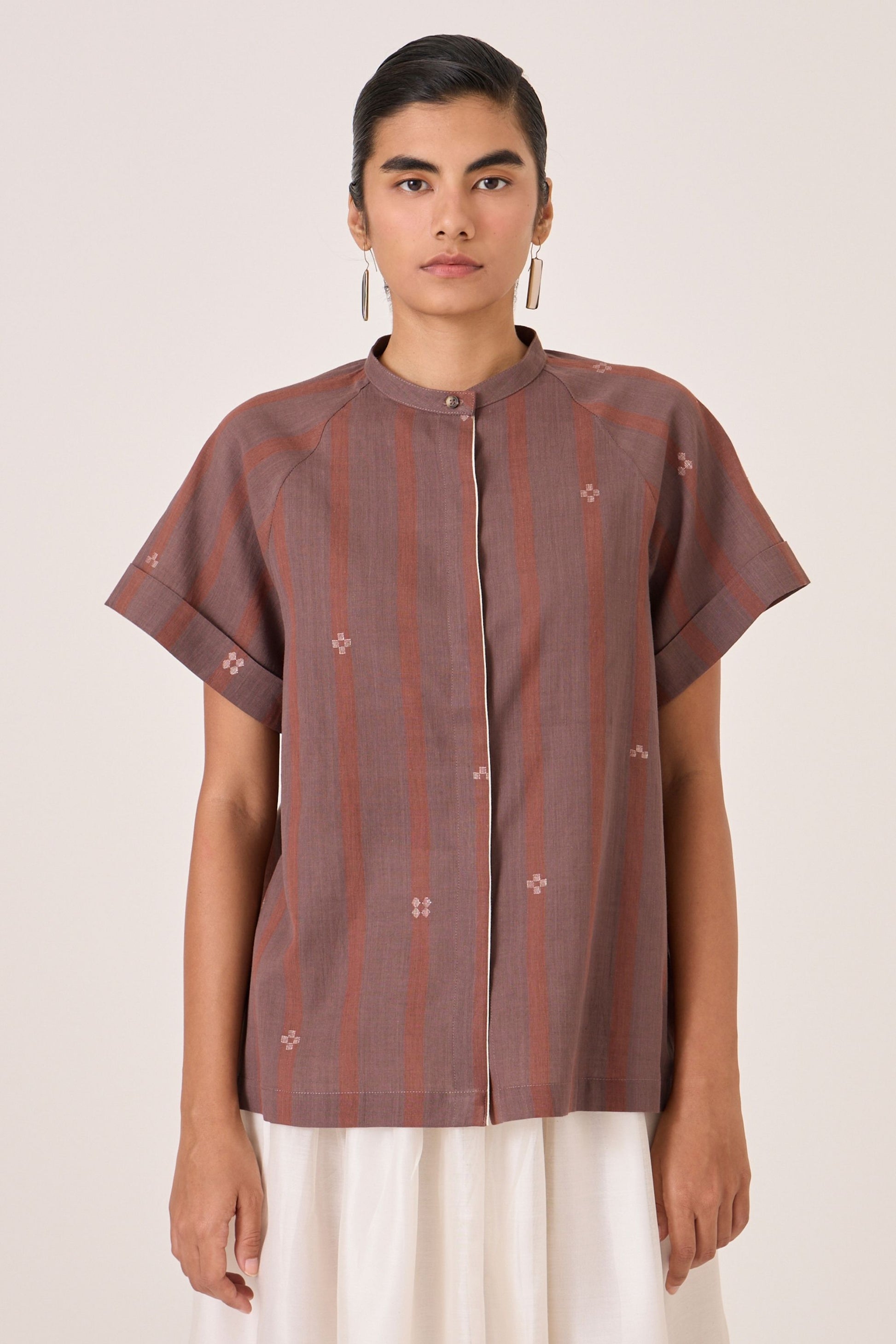 This shirt is crafted from a sublime jamdani cotton, handwoven specially for The Summer House.