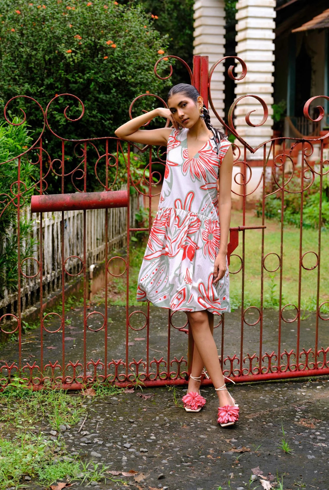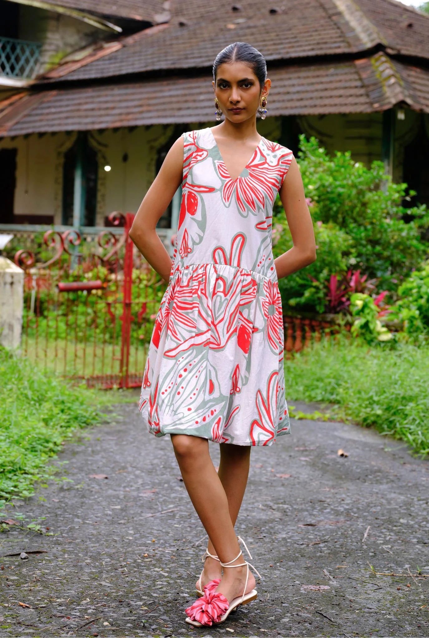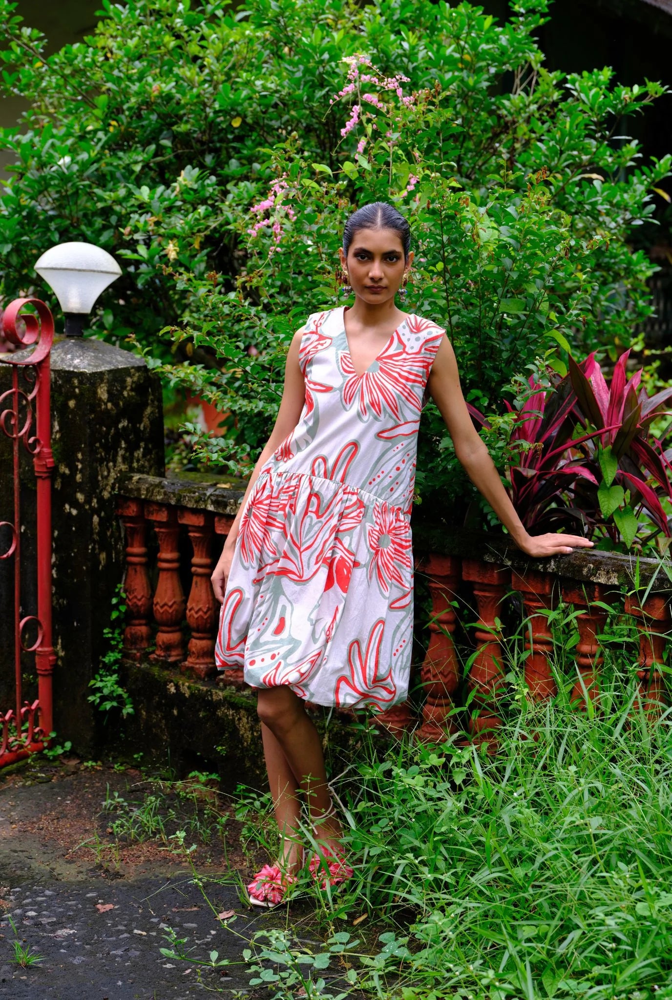 We turned our love for bubble hem dresses into making one of our own! Crafted in cotton, this playful dress features a V-neck and an eye-catching abstract JODI print.