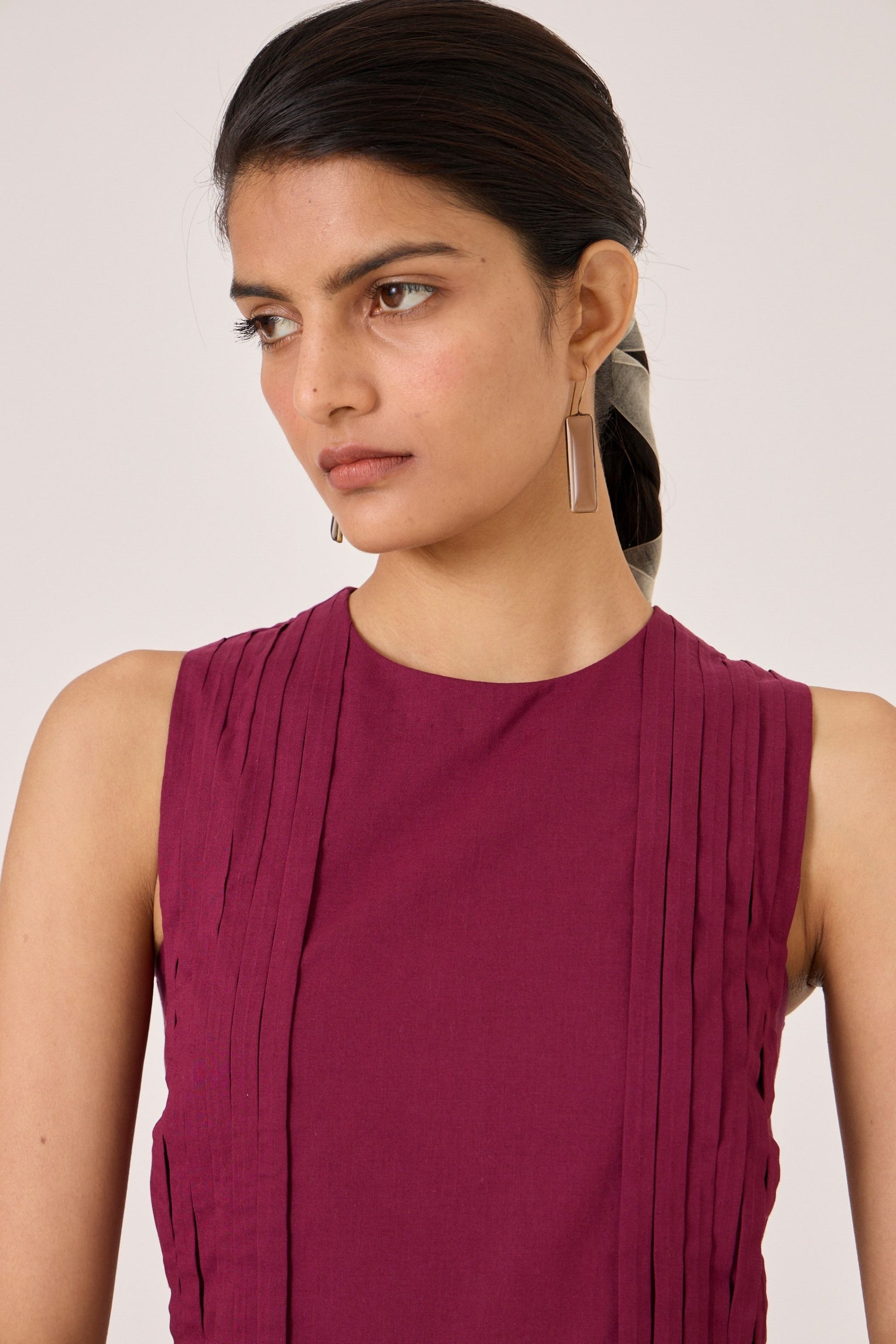 - Box pleat shoulder detail wit’s subtle cinch at waist