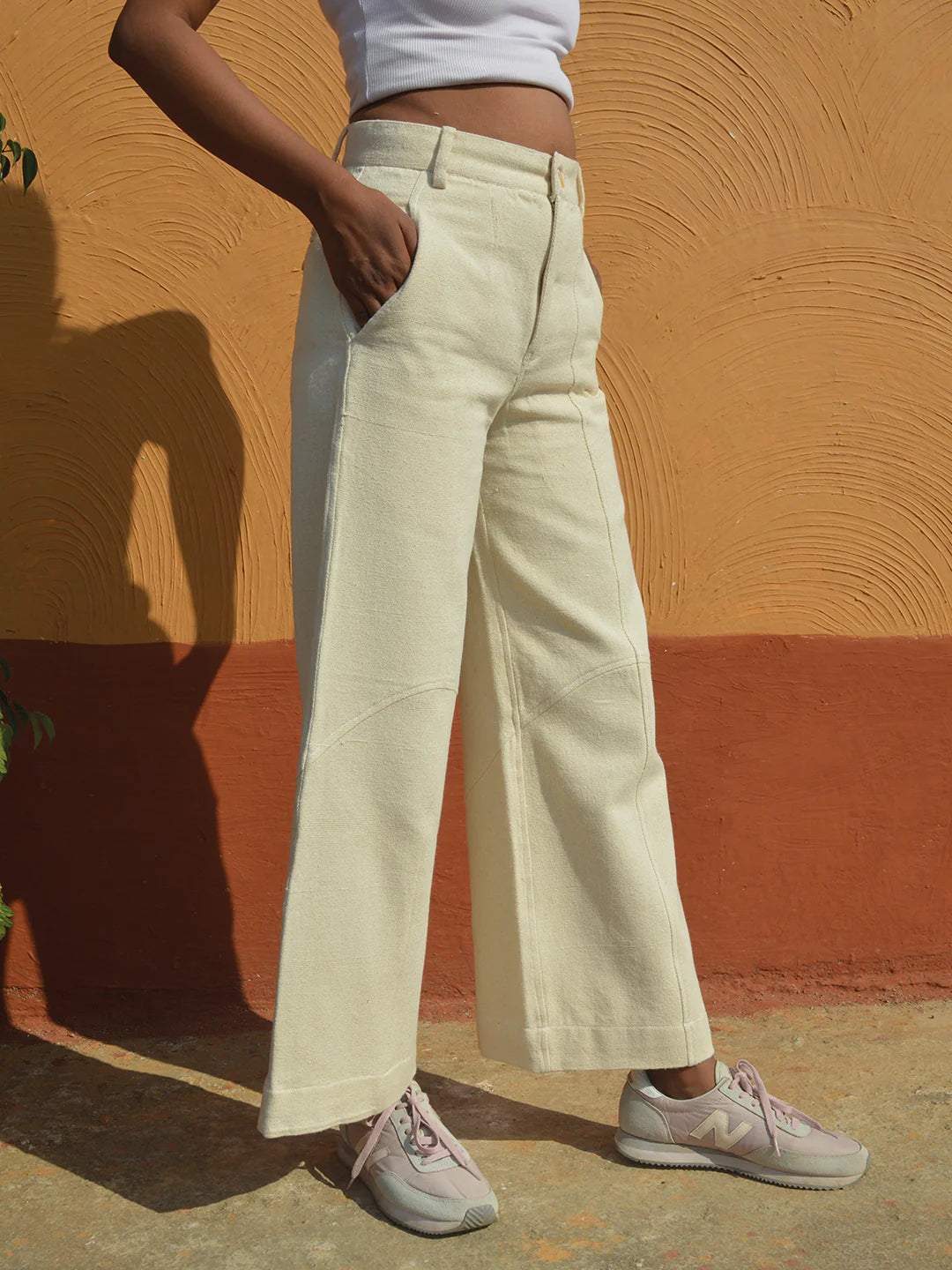 Jharkhand handloom Unisex Wide Leg Pant | Cream