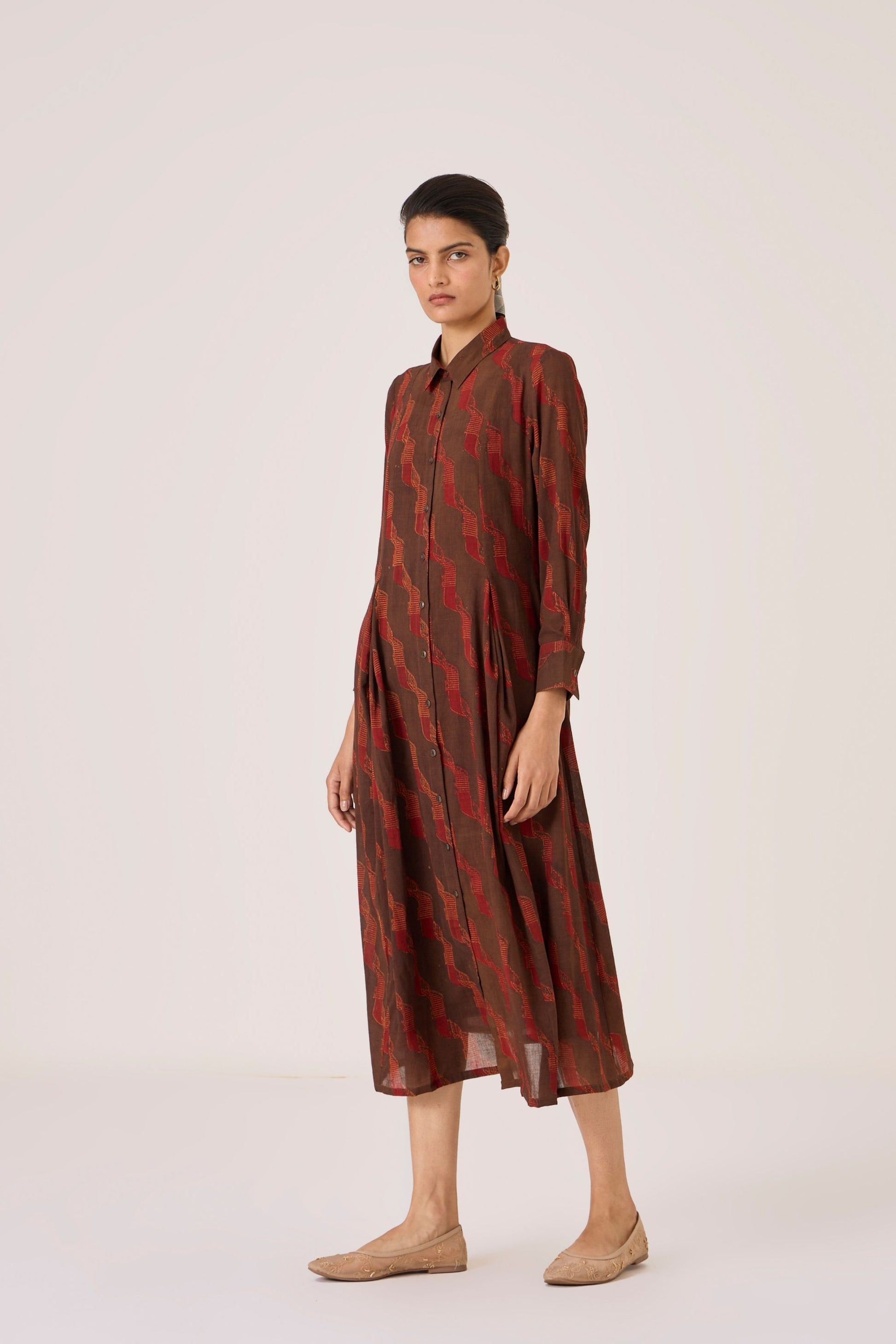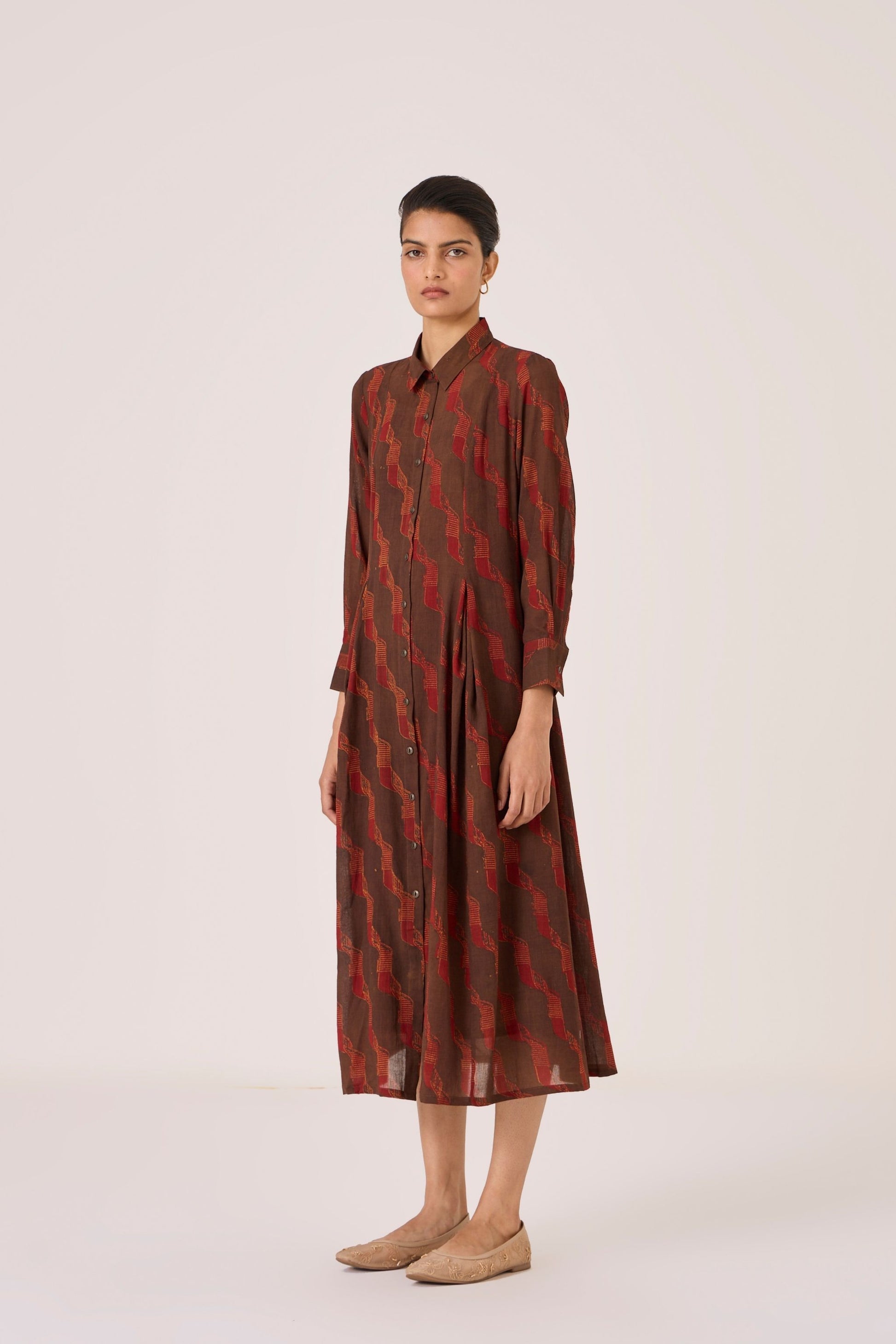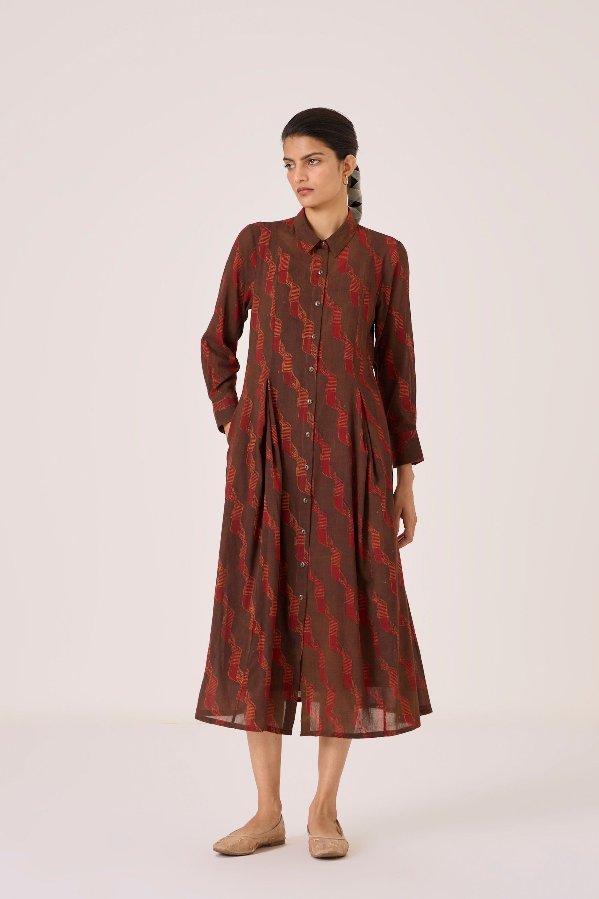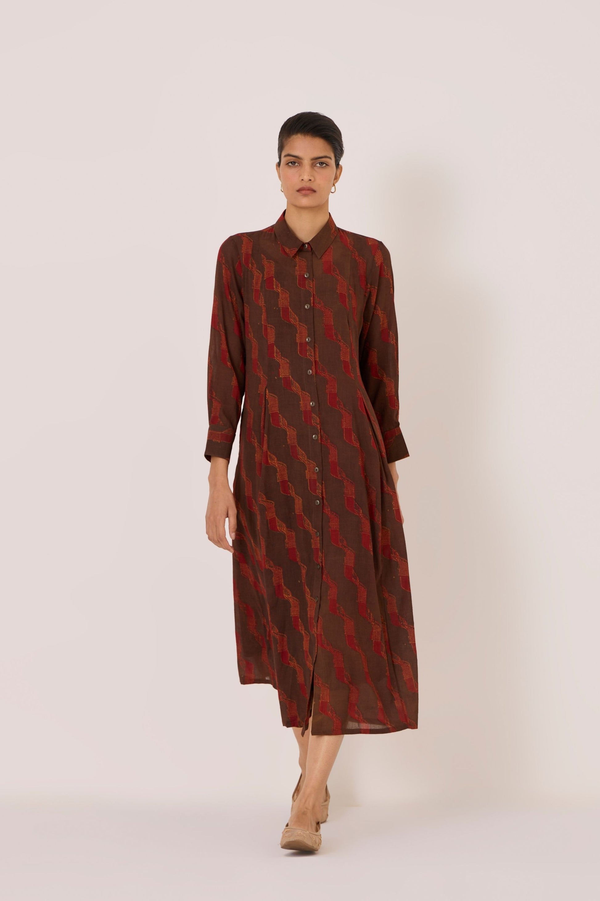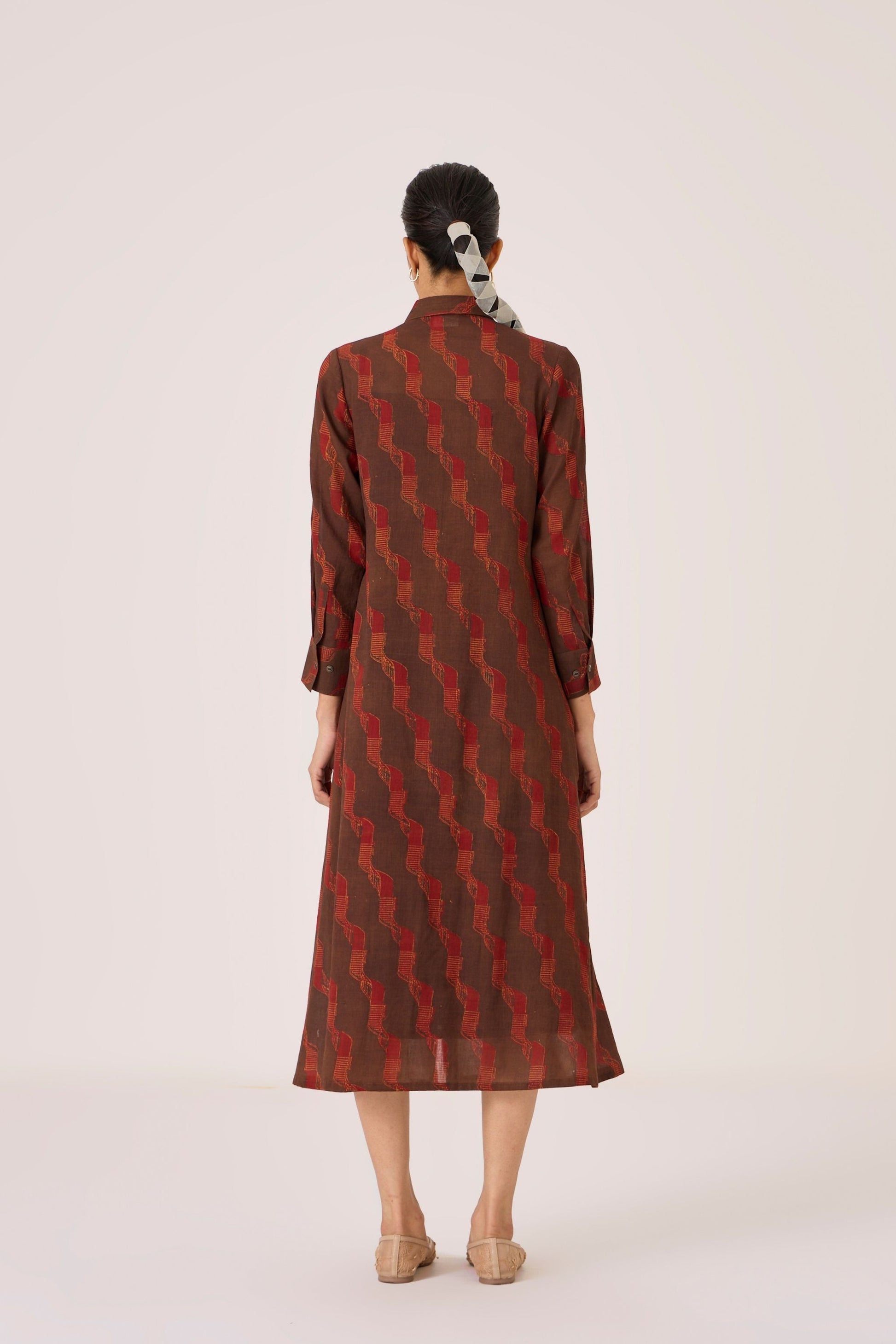 This signature ajrakh block print is designed in our studio and hand block printed by traditional artisans in Gujarat. Print placement may vary from garment to garment. Slight irregularities in print are common and speak to the hand processes involved.