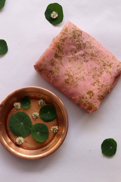 Elevate your textile experience with our exclusive fabric collection. Each piece is meticulously eco-printed with temple flowers, capturing the essence of nature and the sophistication of HABUTAI SILK. Mulya fabric, 44 inches wide, boasts unparalleled beauty and comfort, crafted entirely from luxurious silk. Handmade by skilled artisans from the Himalayan region, each piece is a unique masterpiece
