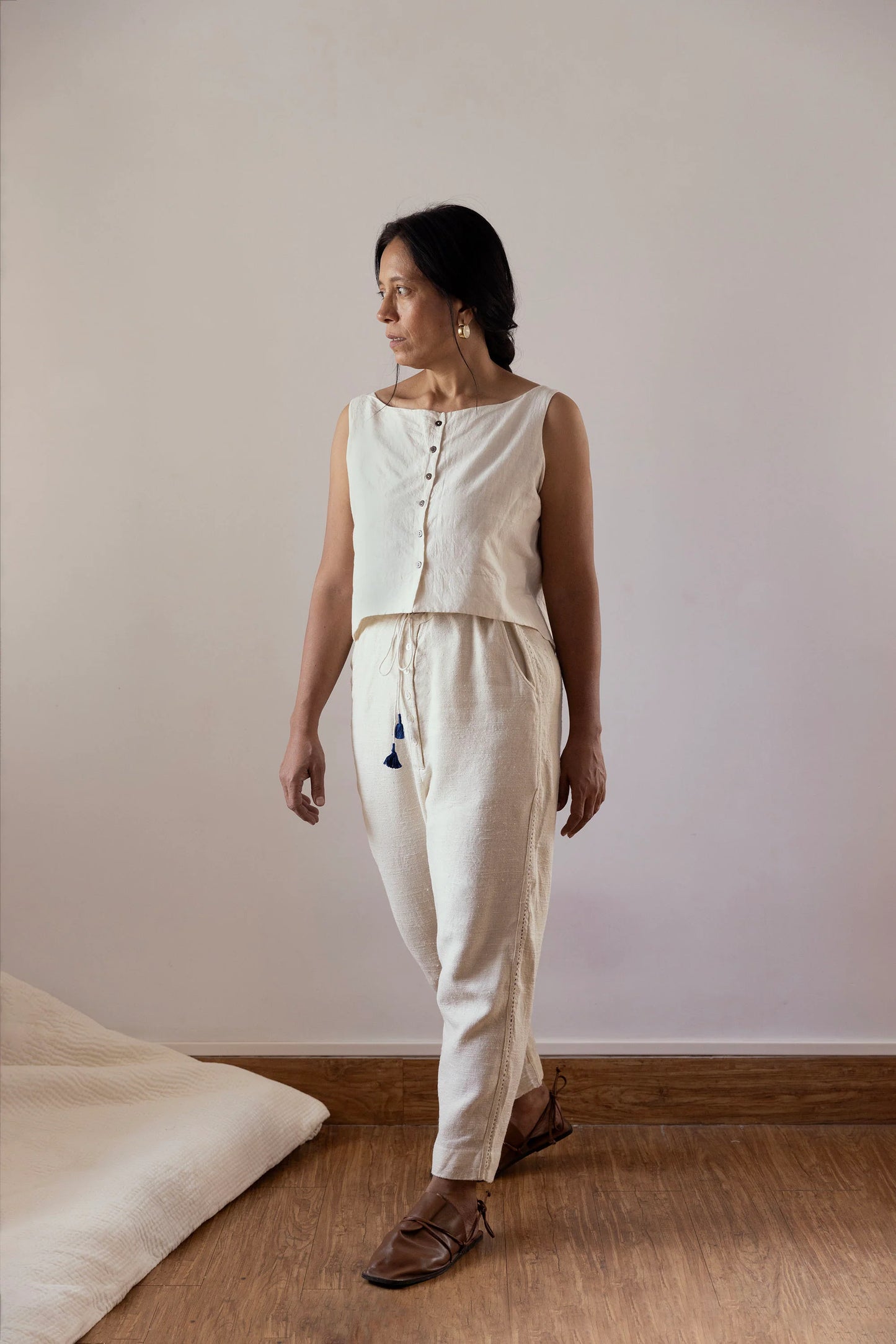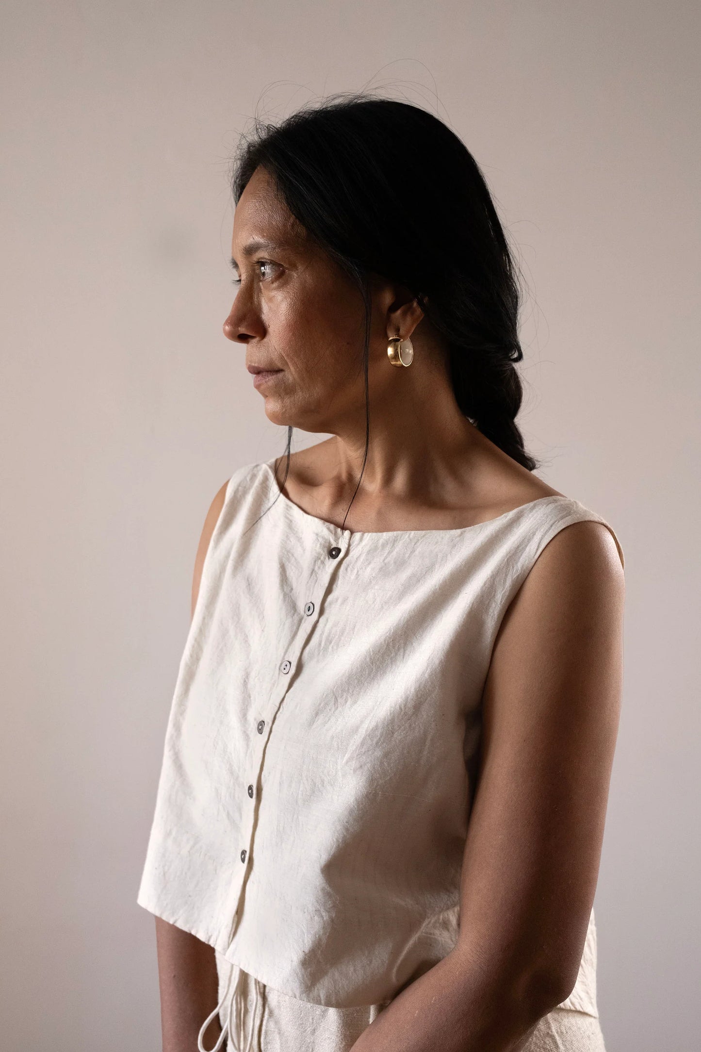 Expertly designed for comfort and style, the Aakado Sleeveless Top features a double layer design and an asymmetrical hem. The front buttons add a touch of sophistication, making it a versatile piece for any wardrobe. Enjoy the sleek, modern look while staying cool and comfortable.