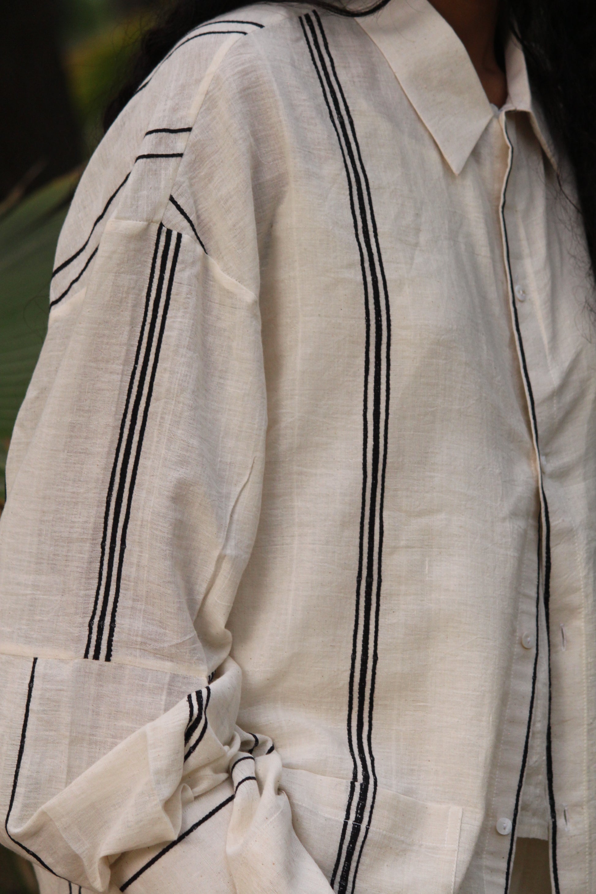 CLASSIC COLLAR, FULL SLEEVES WITH STYLED CUFF DETAIL, MOP BUTTONS.