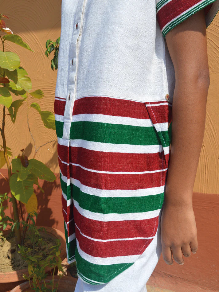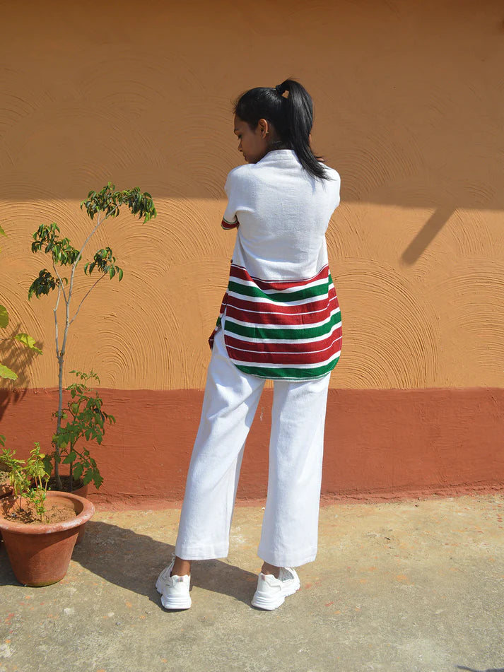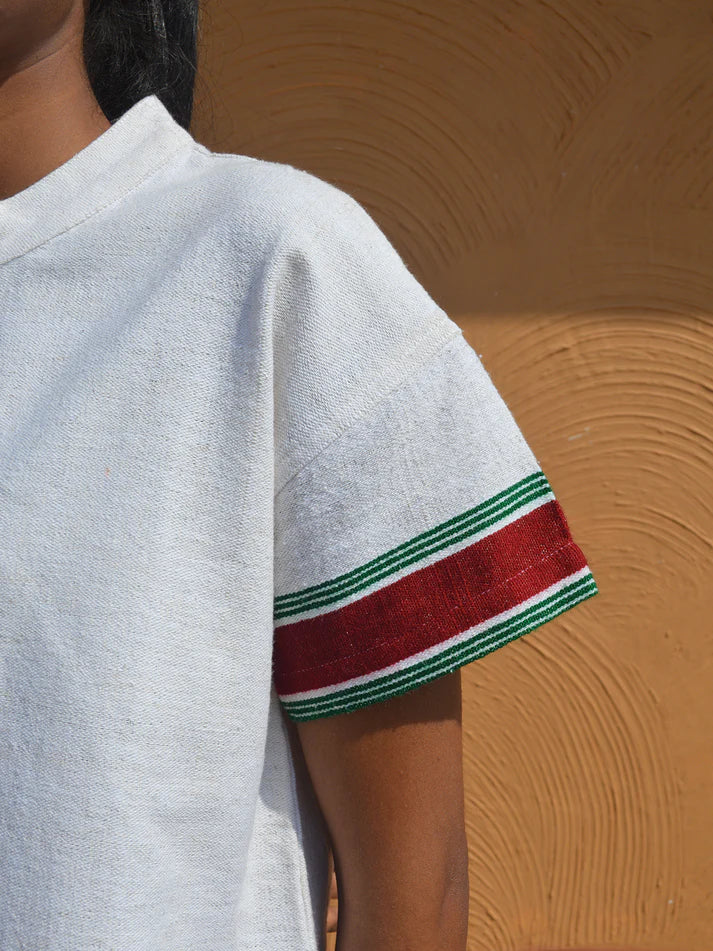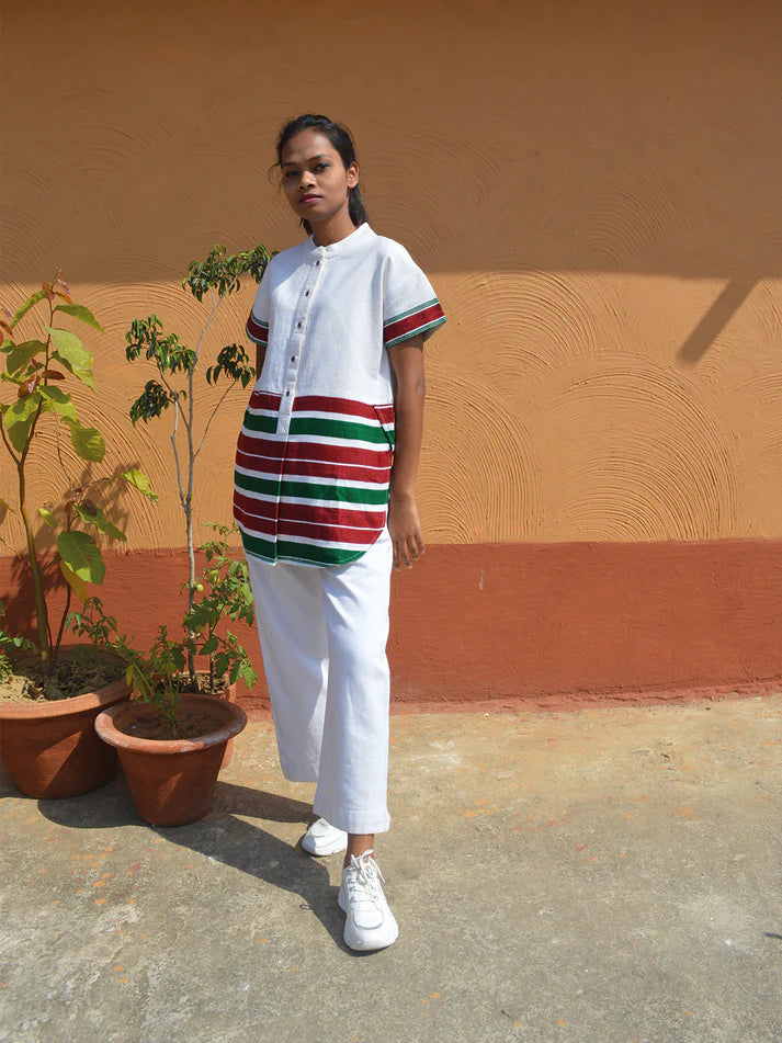 Expertly handwoven from Jharkhand Tribal Textile, the Biru tunic is a blend of heritage and modern style. Made from 100% cotton, this plain weave product features coloured detail and side slits.