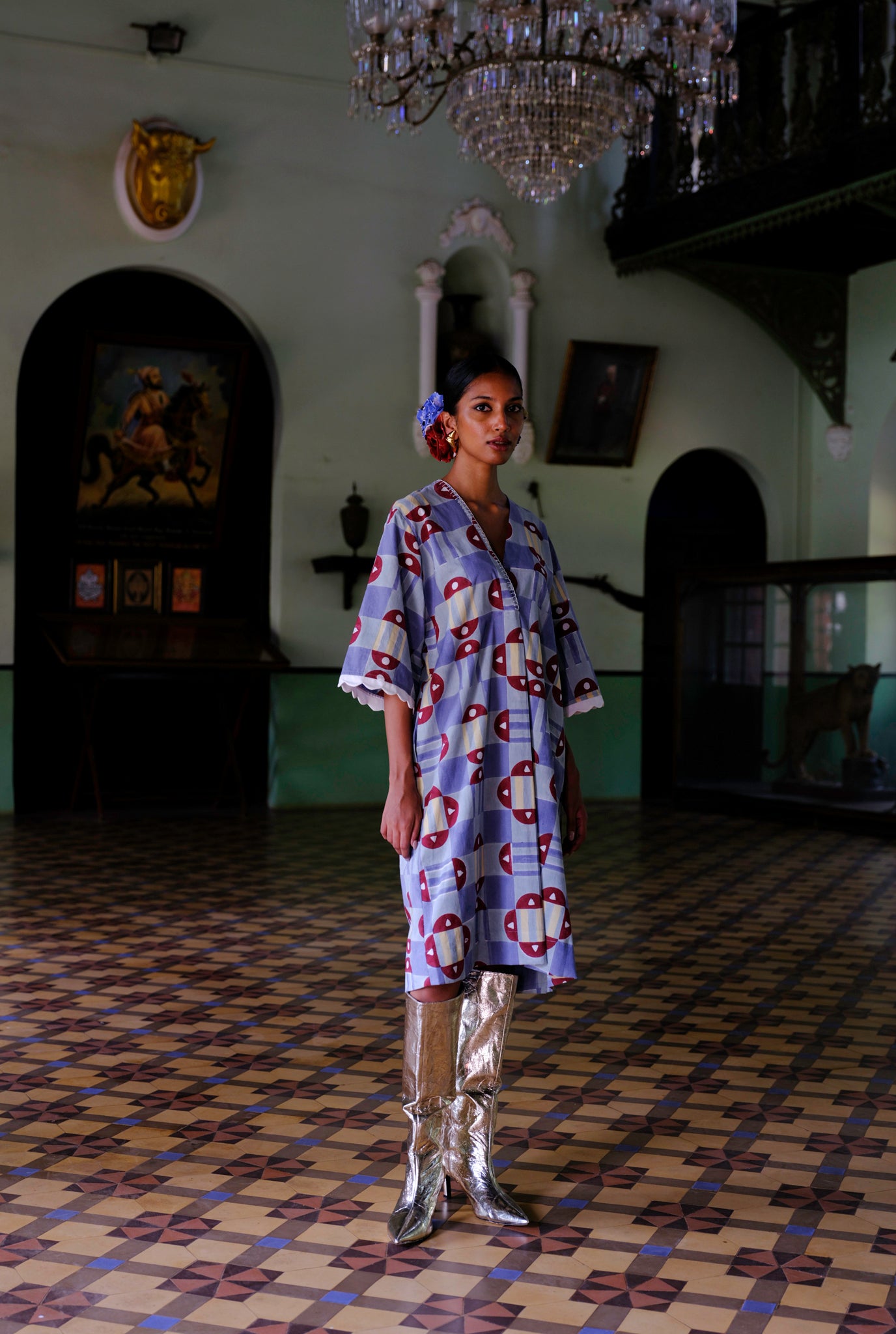 2.5 metres of cotton fabric sourced from Jaipur has been used for this piece. Hand printed by our artisans in Jaipur, manufactured in our workshop at Pune, India. This product is hand-printed in Jaipur, India using techniques of traditional hand block printing. Subtle variations in patterns are natural to this process. We believe this makes each creation unique and charming.