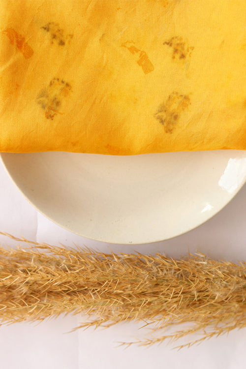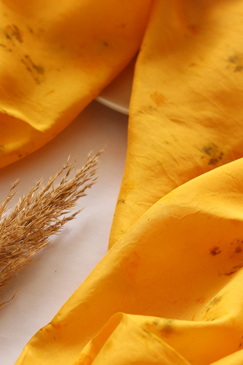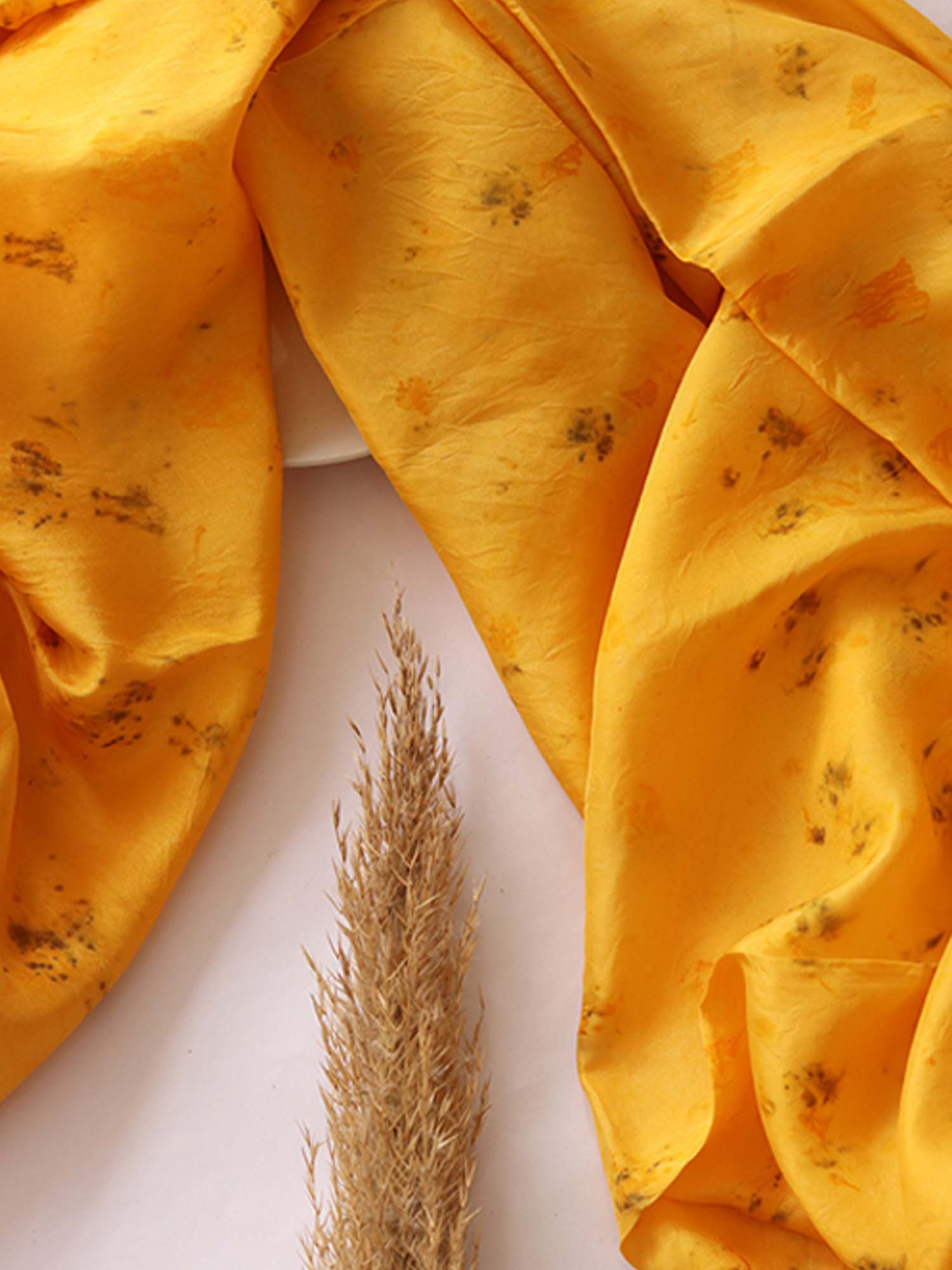 Elevate your textile experience with our exclusive fabric collection. Each piece is meticulously eco-printed with temple flowers, capturing the essence of nature and the sophistication of HABUTAI SILK. Mulya fabric, 44 inches wide, boasts unparalleled beauty and comfort, crafted entirely from luxurious silk. Handmade by skilled artisans from the Himalayan region, each piece is a unique masterpiece