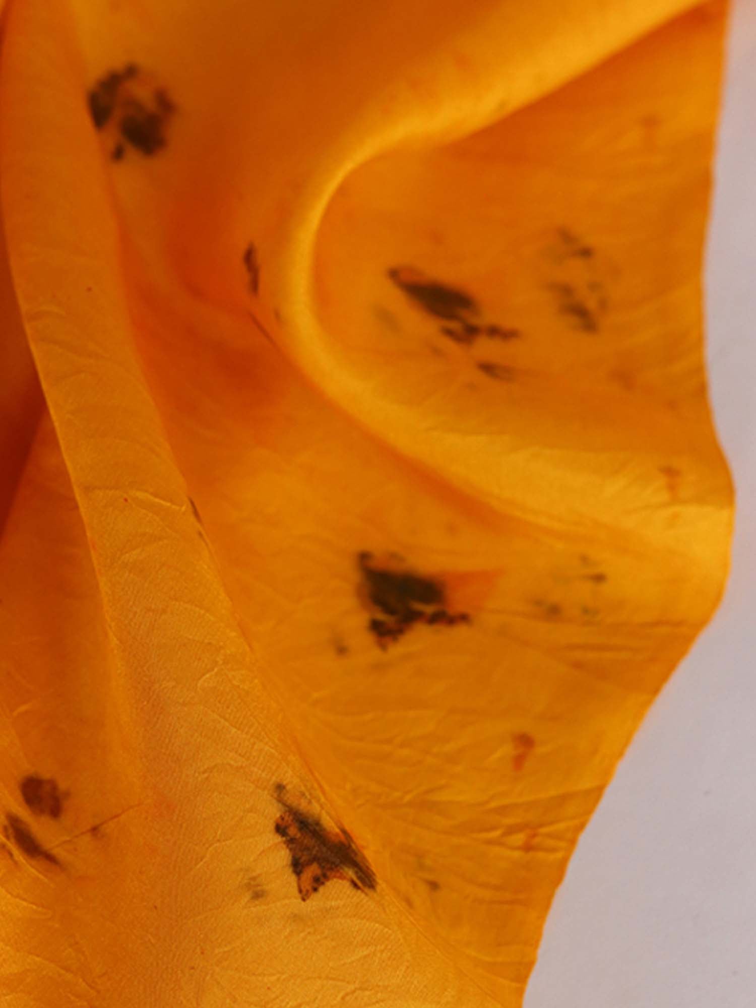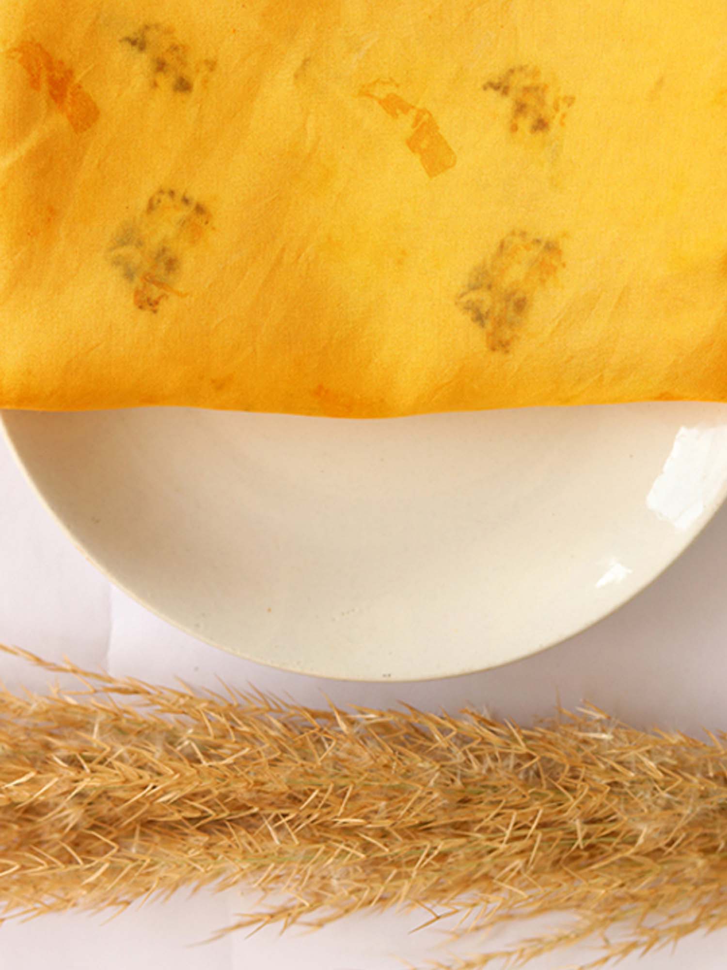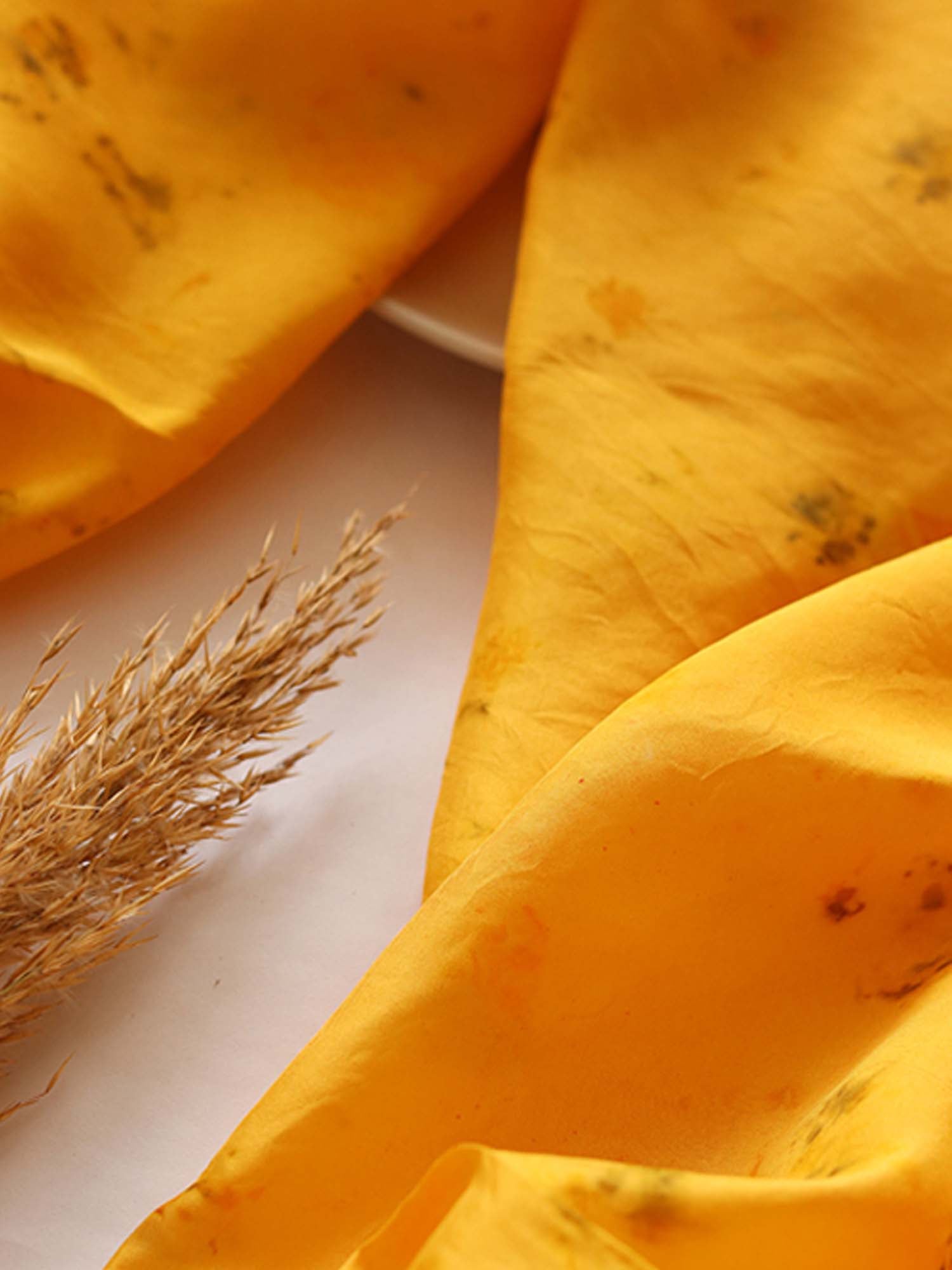 Mulya believes in the transformative power of nature’s palette. The dyes used in its textiles are sourced from flowers, leaves, and barks, many of which are collected from local temples, weaving stories and memories into every piece. Through its eco-printing process, Mulya pays tribute to the Earth, minimizing waste while celebrating the intricate beauty of natural elements. This ensures that no two creations are ever alike.