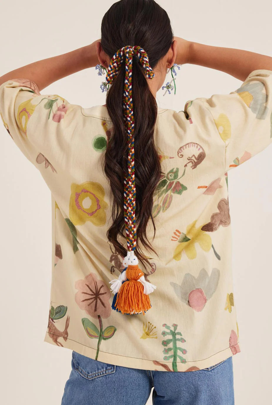 A t-shirt so nice, you’ll want to wear it twice. Signature JODI printed woven t-shirt with a ribbed neck and hand embroidery.