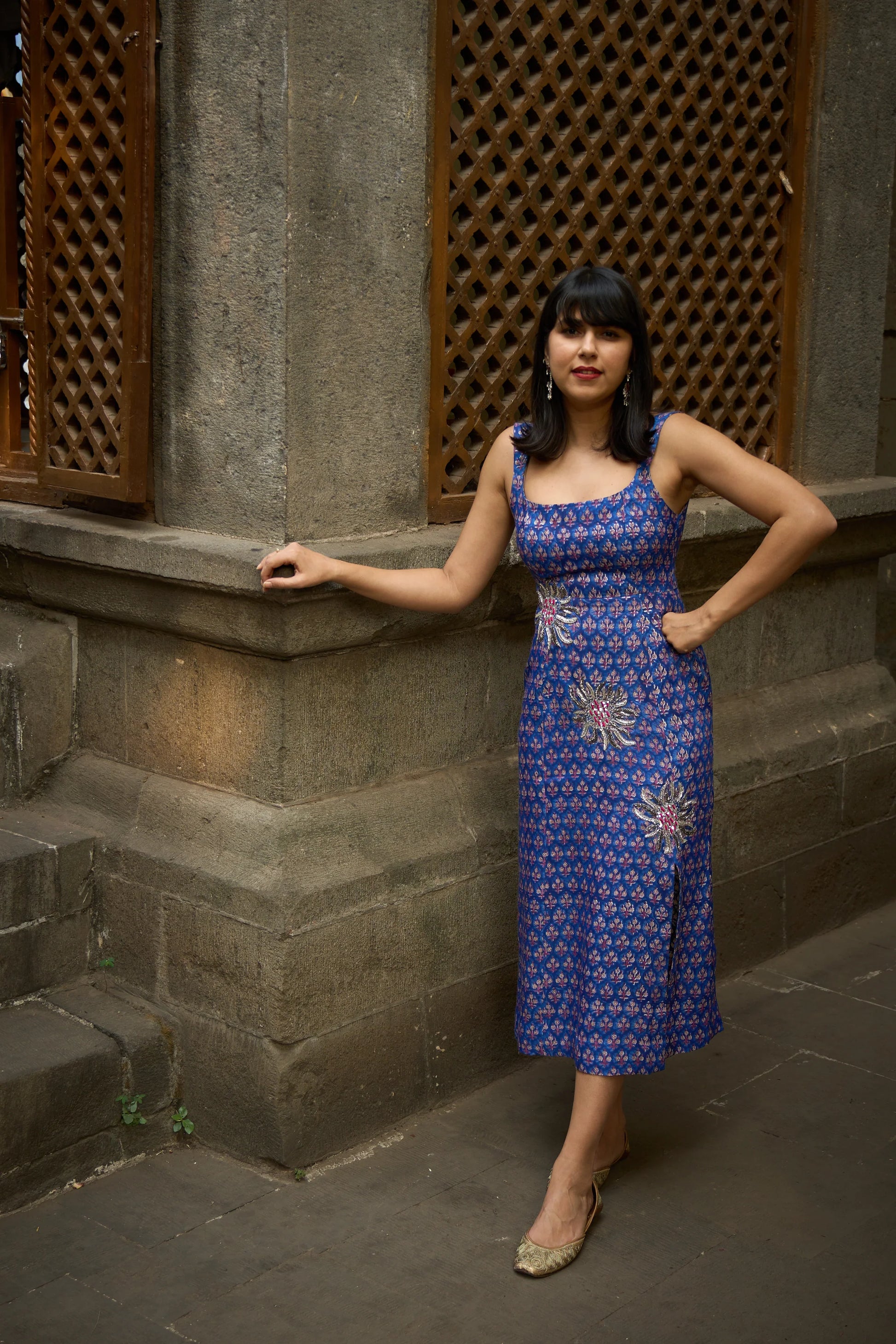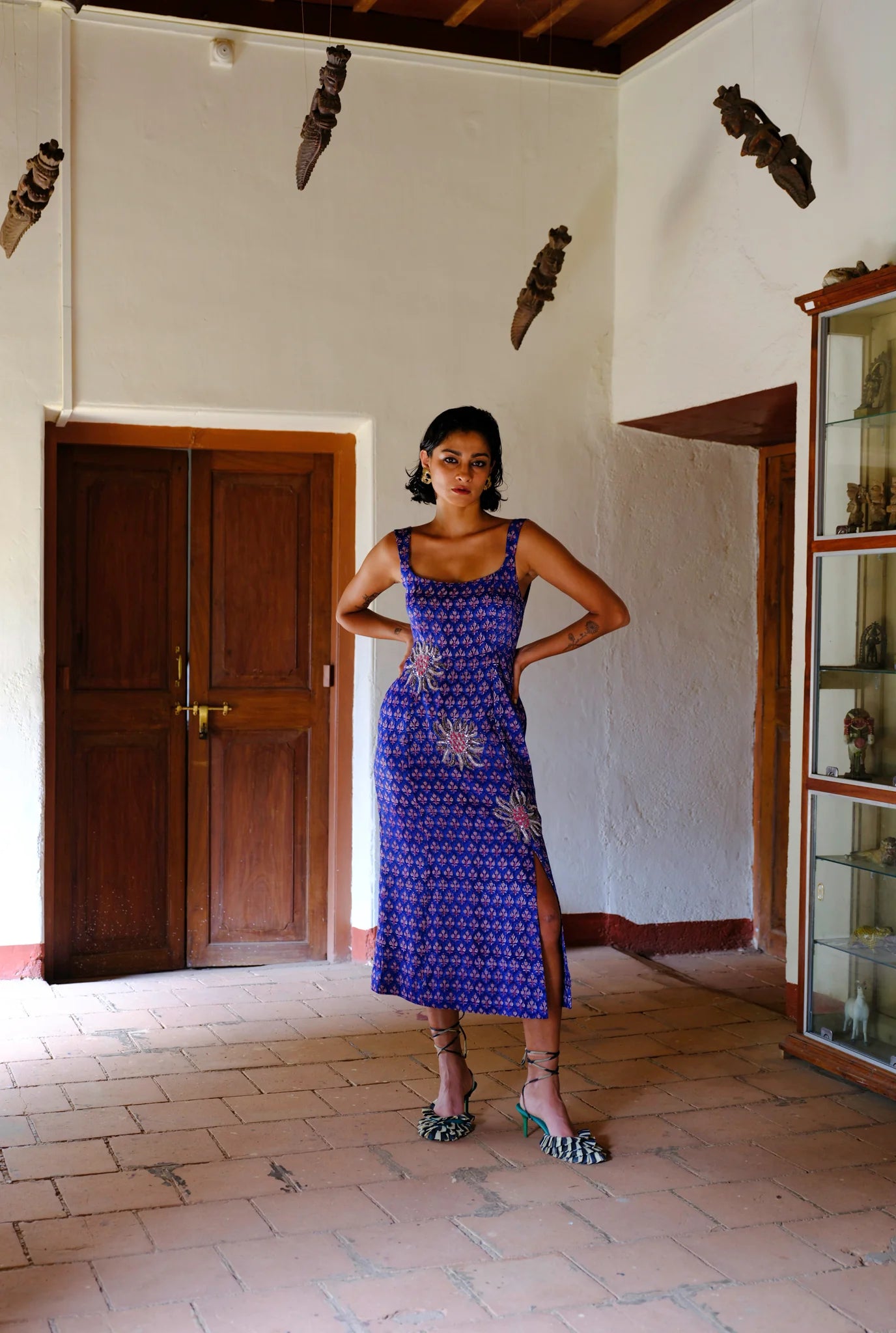 Six metres of pure silk sourced from Rajasthan have been used for this piece. Hand-block printed in Jaipur. Hand embroidered and manufactured at JODI's workshop in Pune, India.