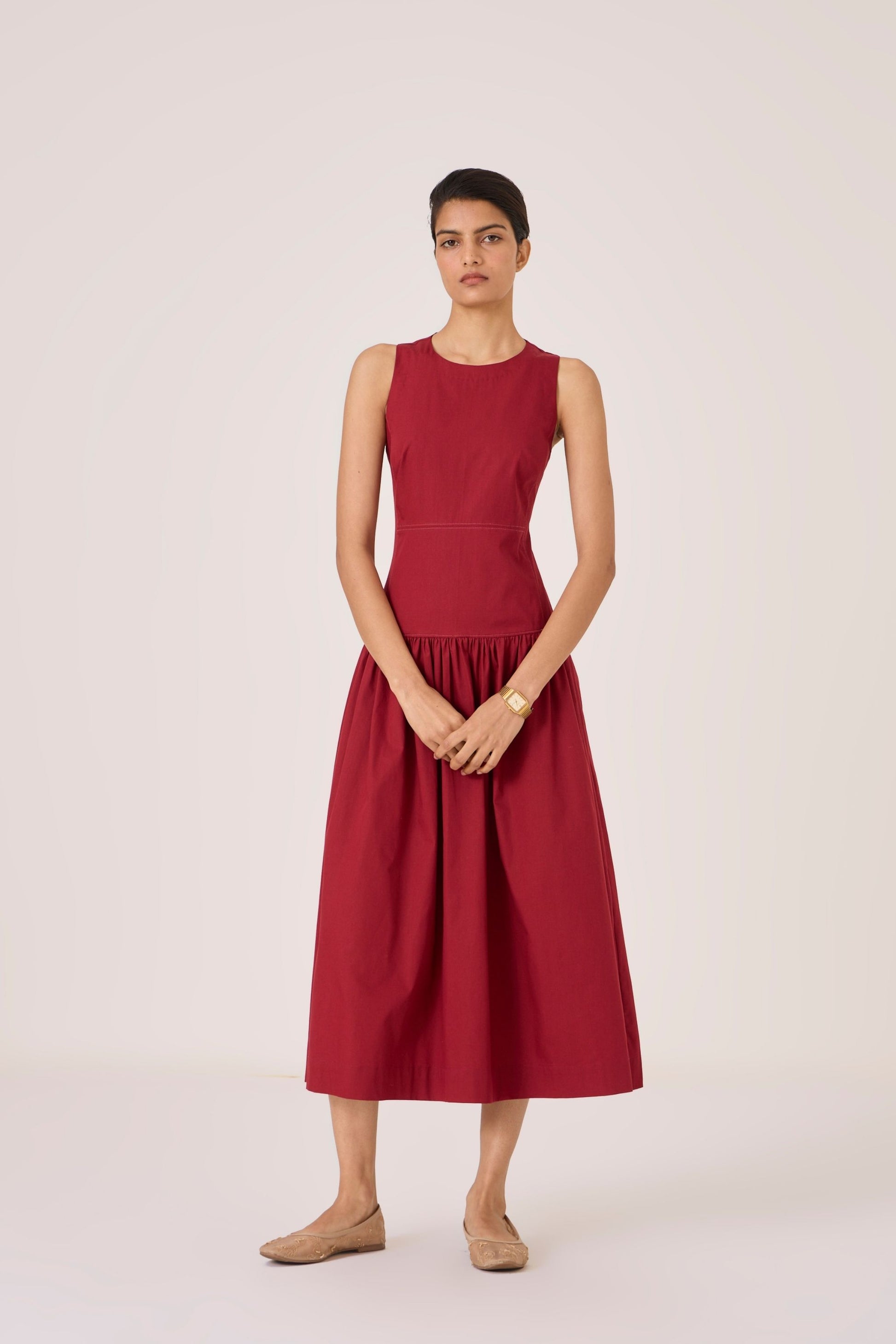 - Gentle gathers at waist