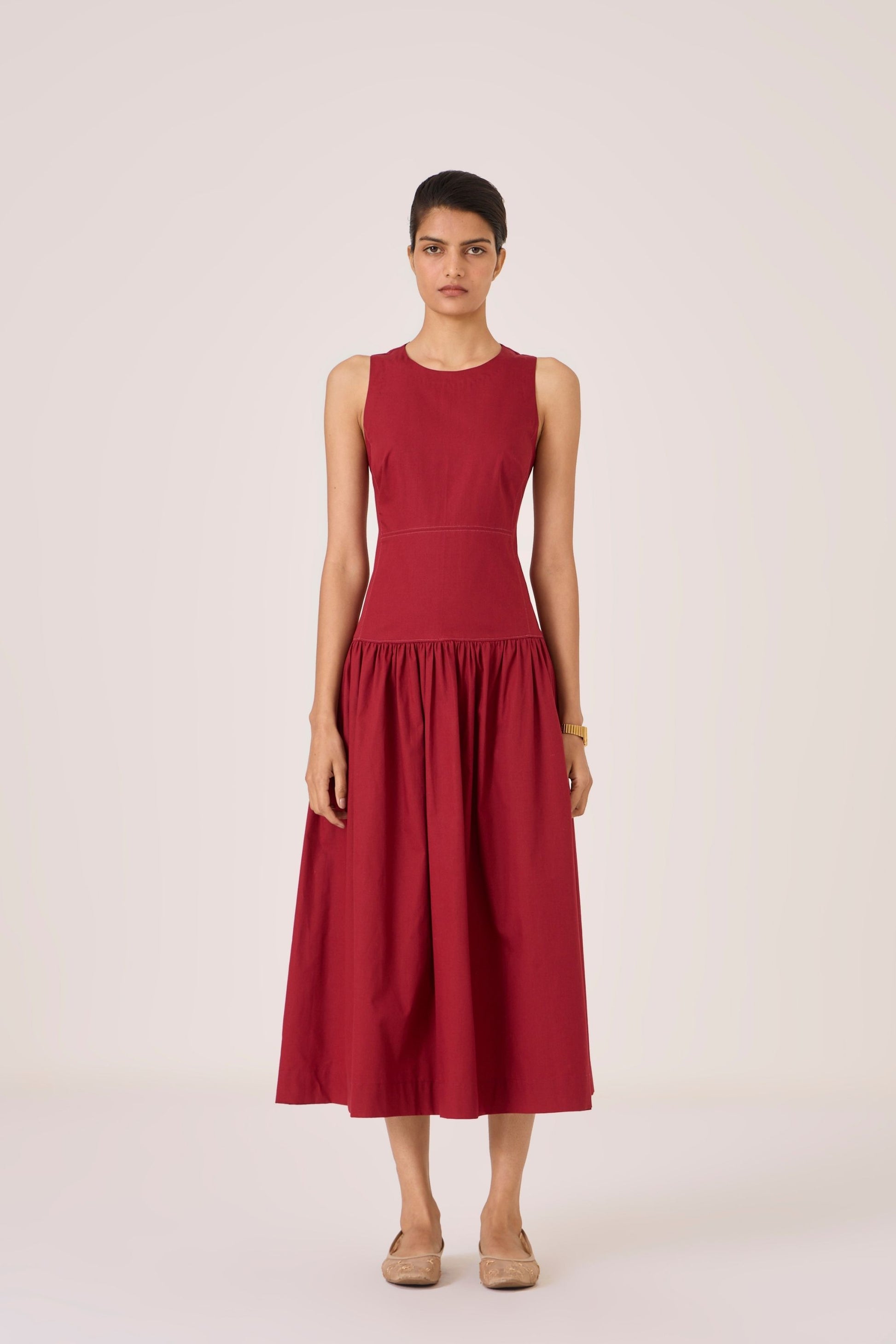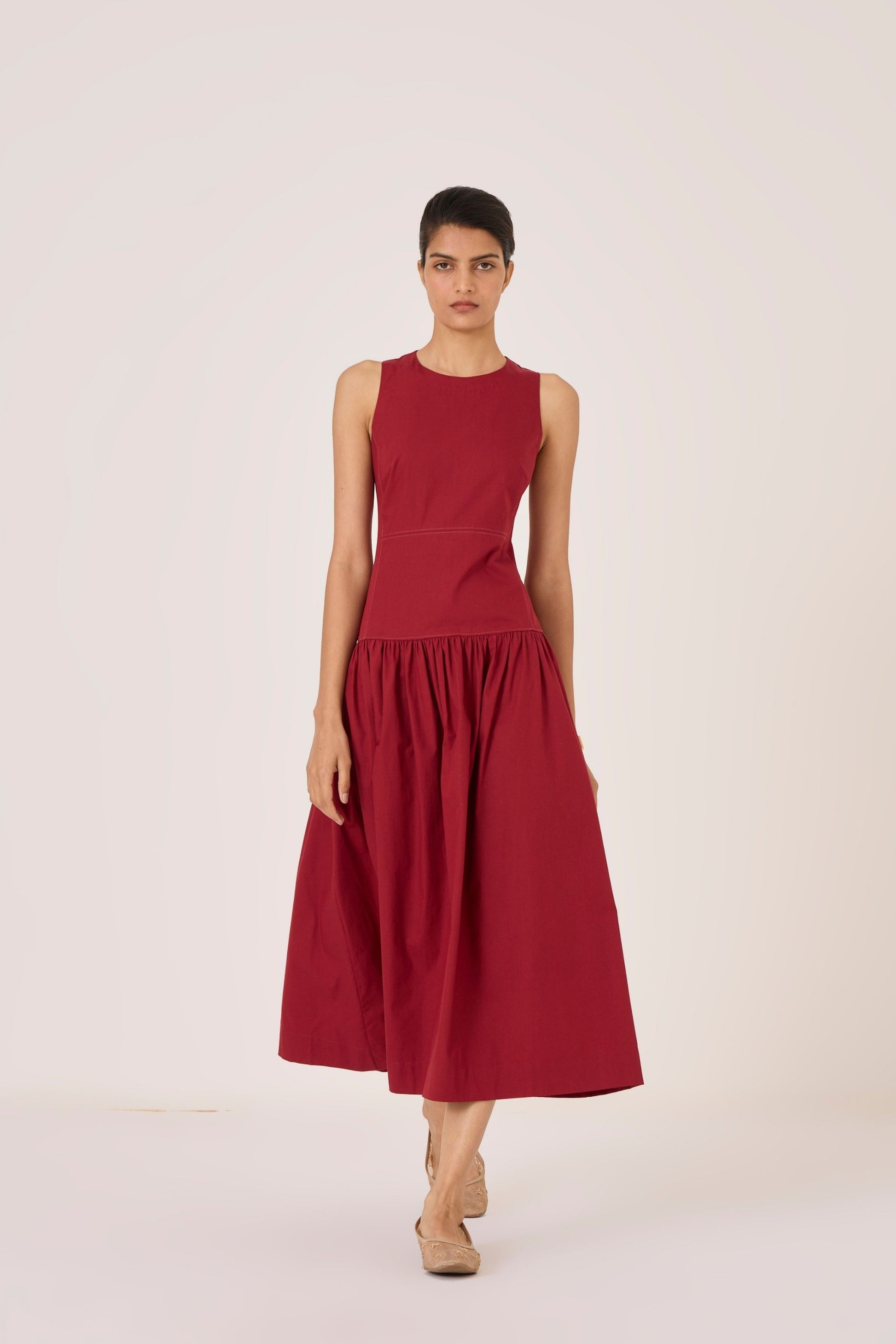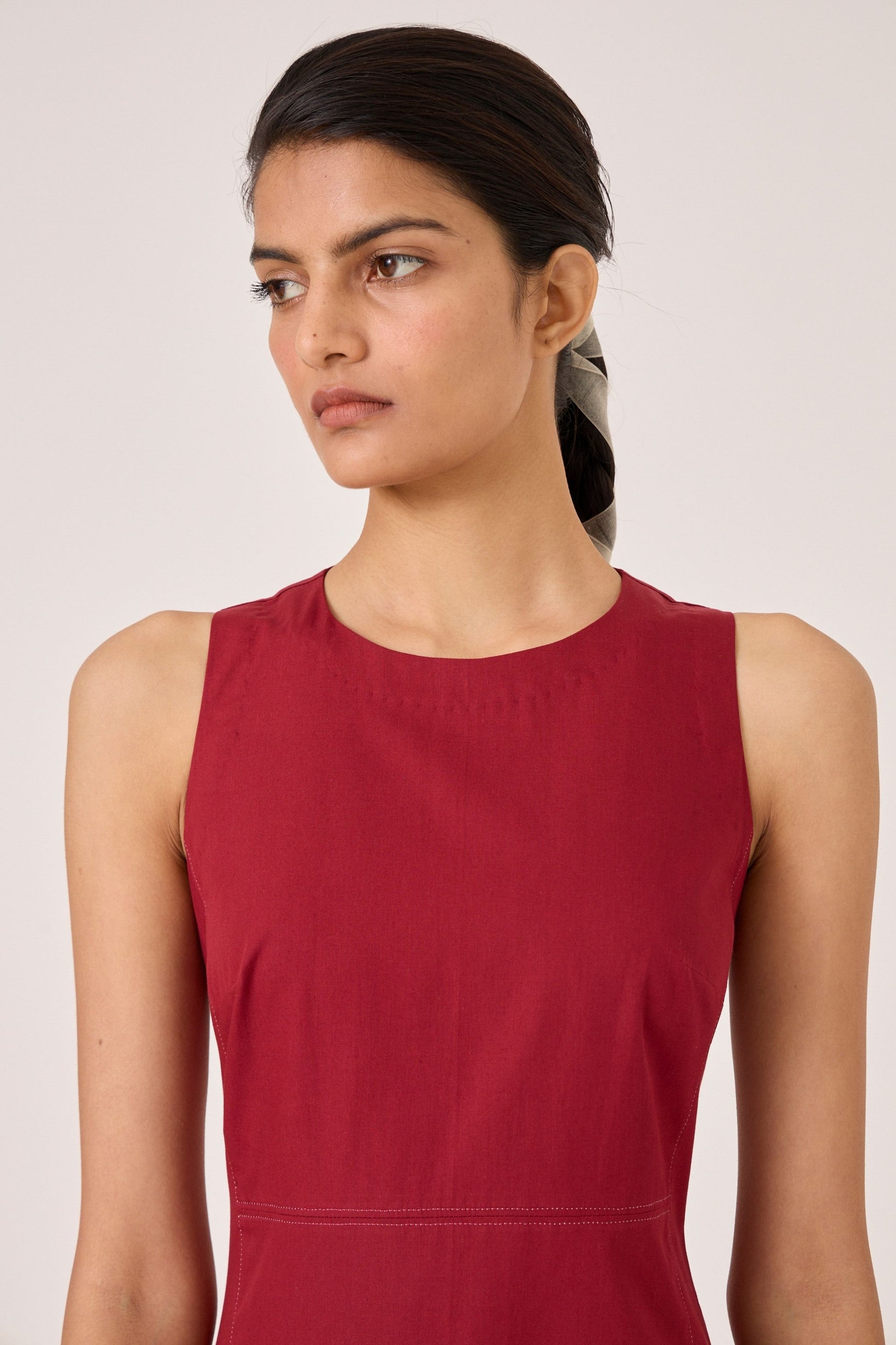 - Sleeveless dress with an angular gusset