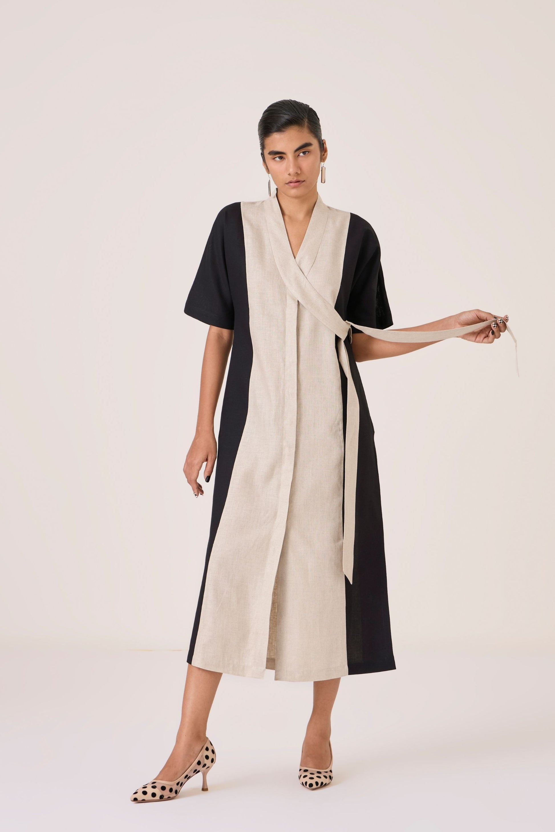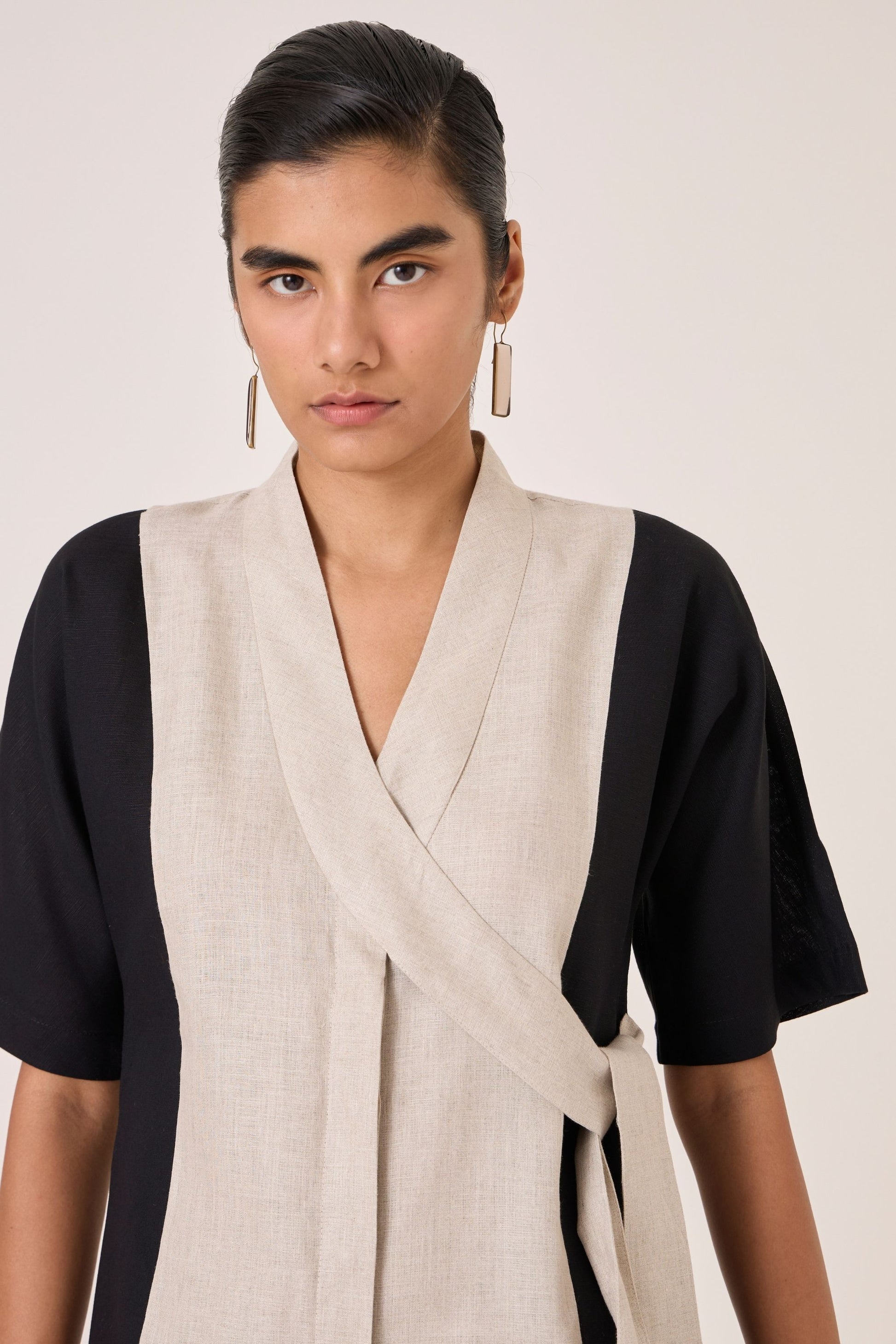 - V neck shawl collar with side tie detail