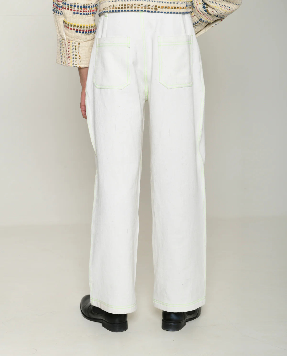Handwoven unisex pieces are skillfully crafted using our recycled fabric with the extra weft technique on frame looms. Each piece is made from Rias Jaipur's manufacturing waste collected over the past year, undergoing meticulous re-weaving and re-imagining for a fresh and unique appearance. This sustainable and eco-friendly fashion choice is created entirely from 100% cotton.