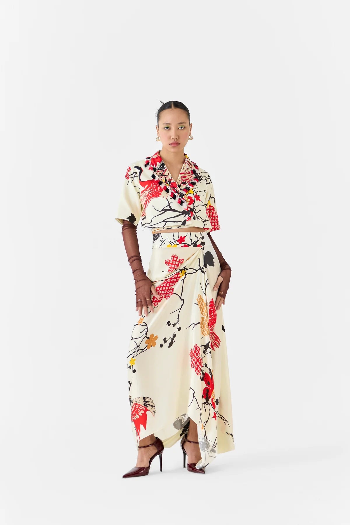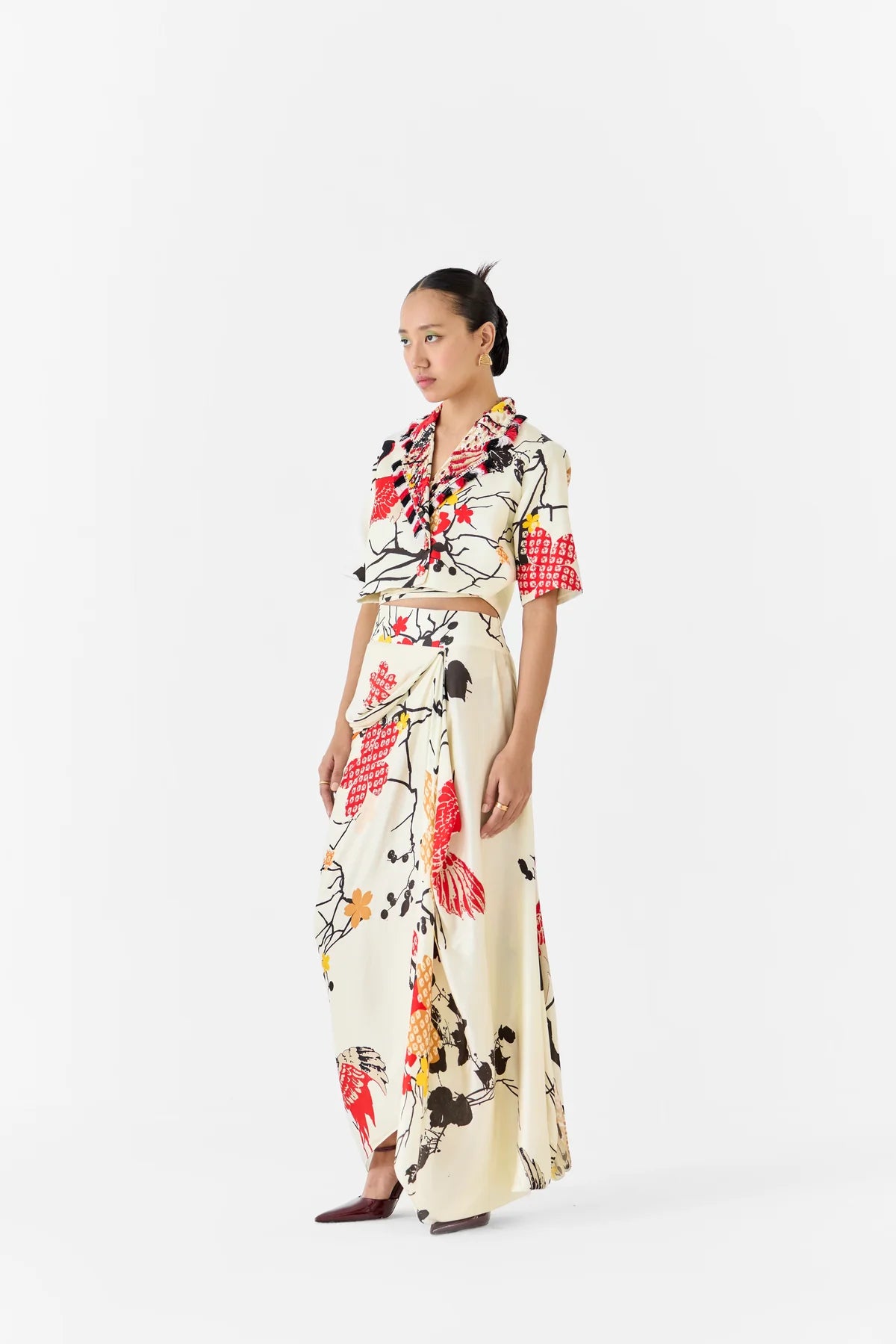 Red Crane | Blazer and Draped Skirt Co-ord Set