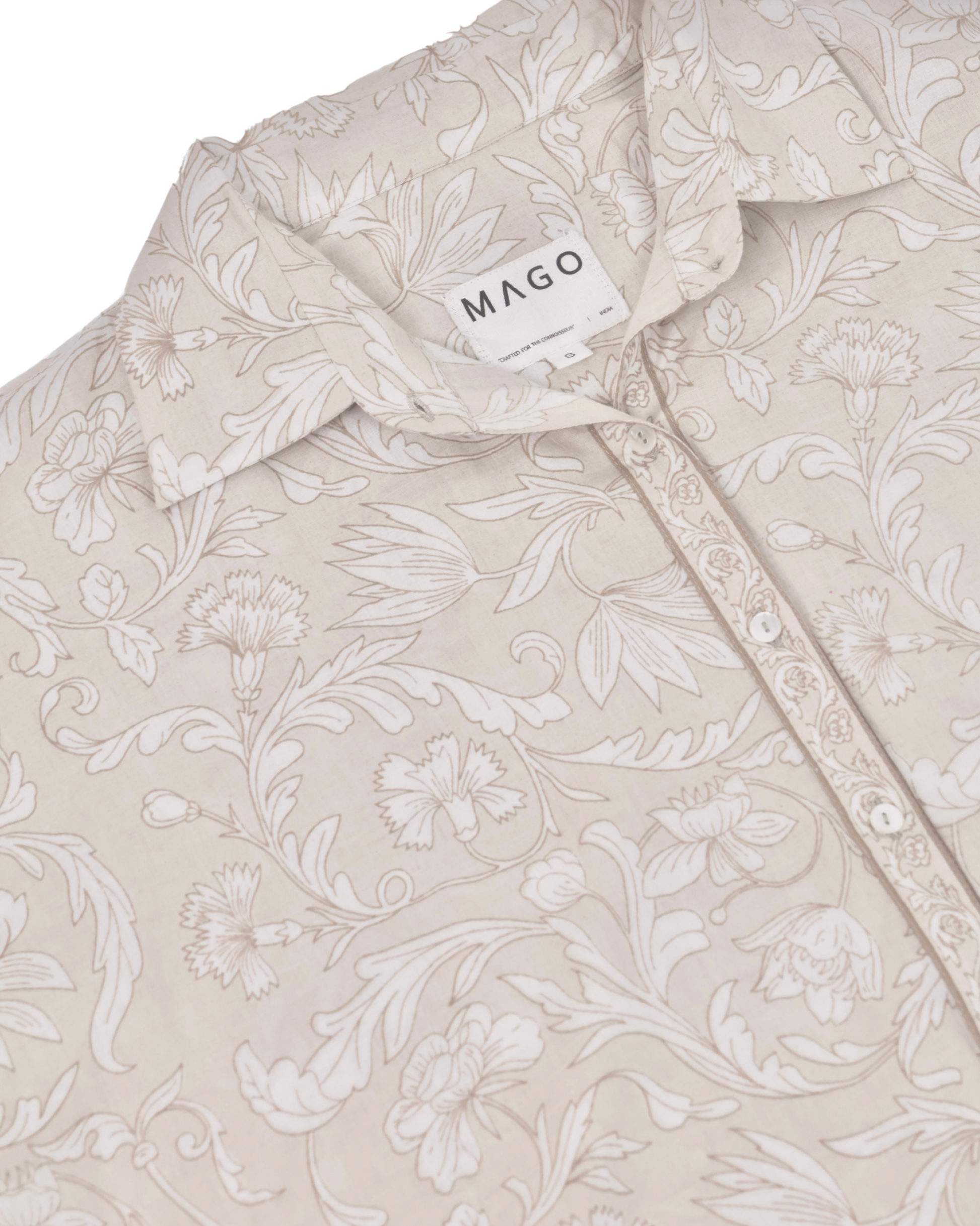 Rooted in India’s artisanal legacy, the brand reimagines the meticulous art of block and hand-screen printing, transforming them into contemporary expressions of elegance. Mago celebrates the quiet beauty of imperfection, evoking timeless sophistication while honoring the hands that bring these stories to life.